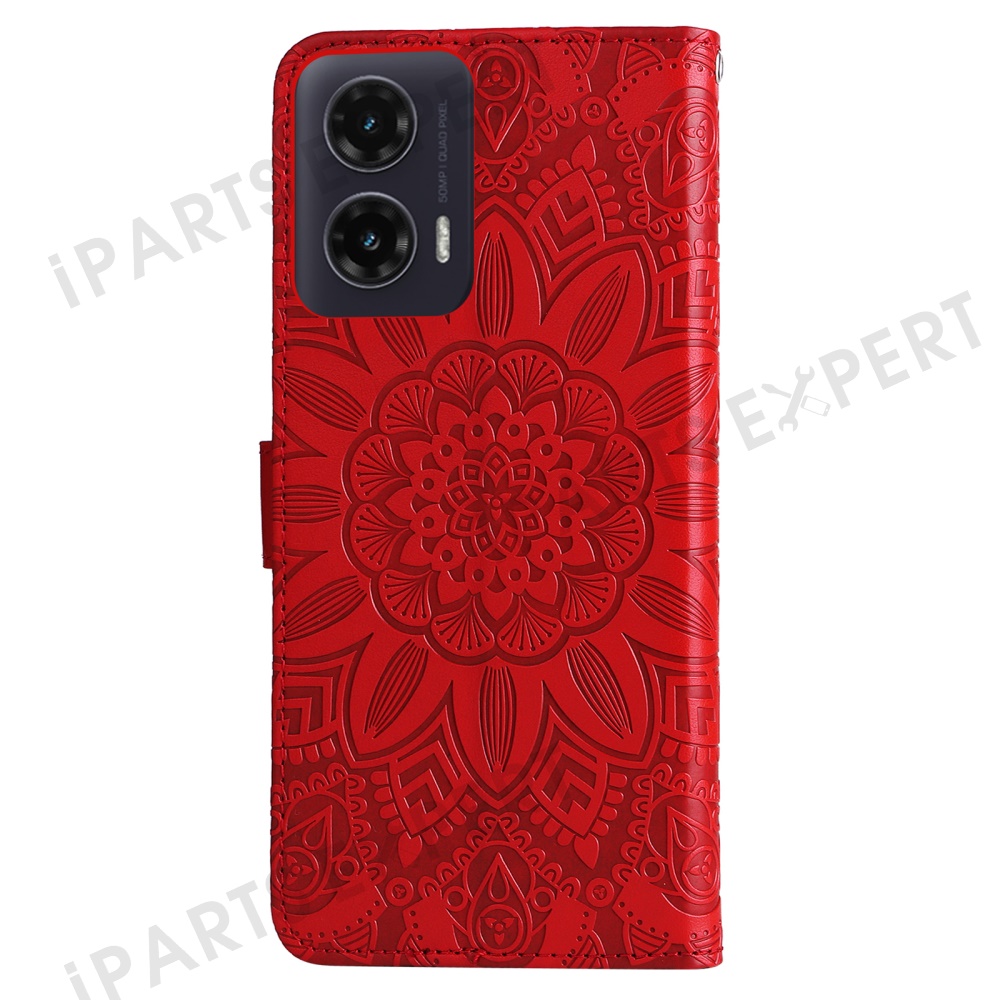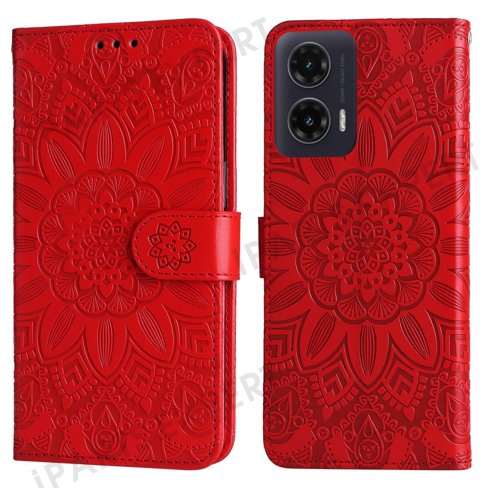 For Motorola Moto G35 5G Case Sunflower Imprint Leather Wallet Phone Cover - Red