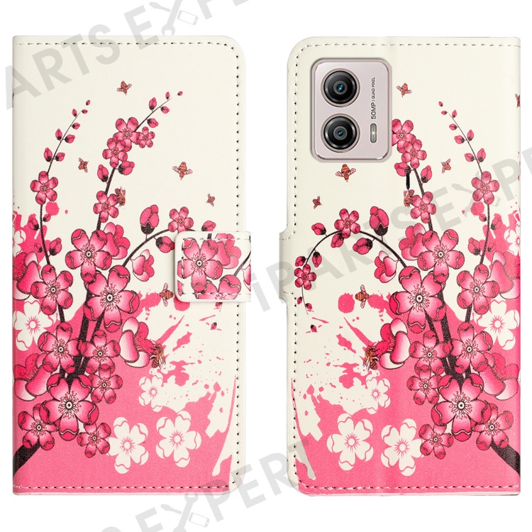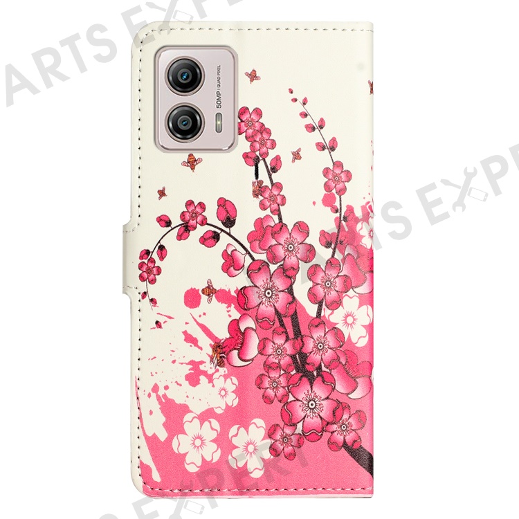 For Motorola Moto G53 5G / G23 4G / G13 4G Stand Phone Case PU Leather Pattern Printing Phone Wallet Cover - Plum Blossom