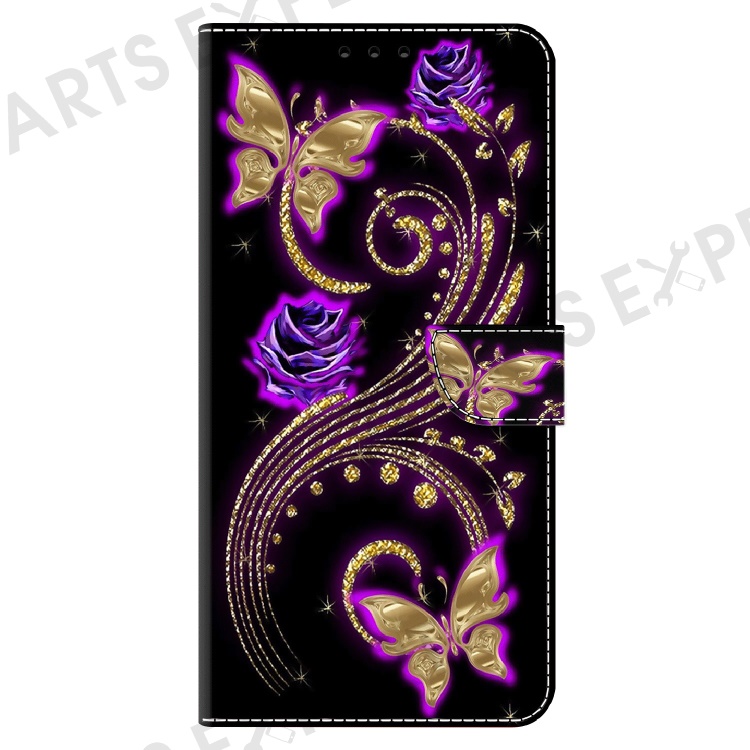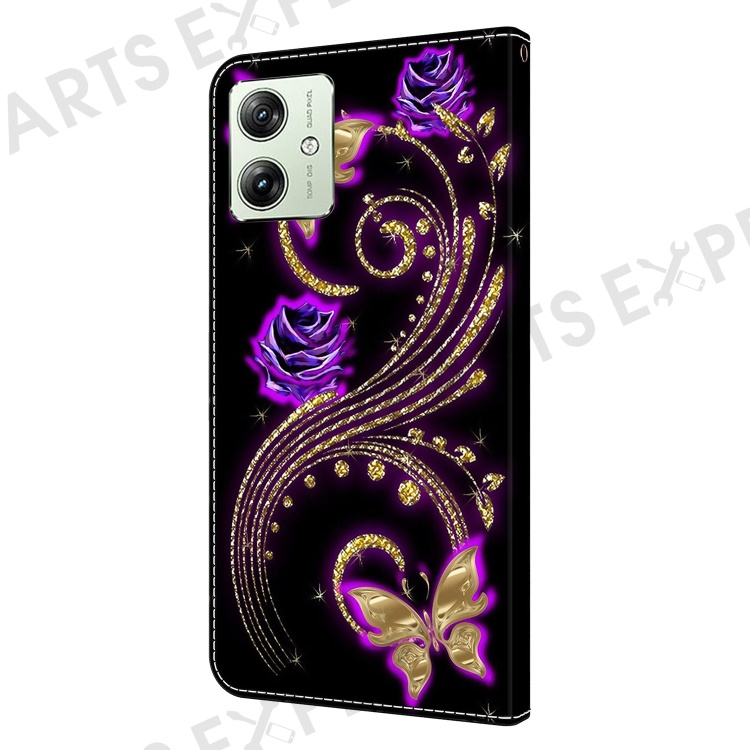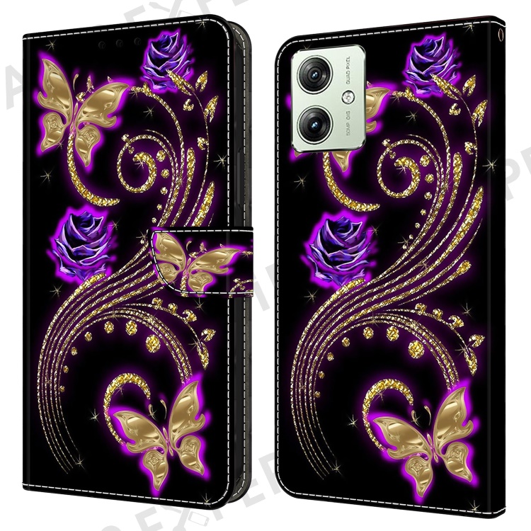 For Motorola Moto G54 5G Case PU Leather Wallet 3D Pattern Phone Cover - Purple Flowers / Butterflies