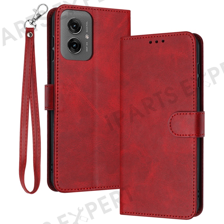 For Motorola Moto G55 5G Case Flip Stand PU Leather Wallet Phone Cover Calf Texture - Red