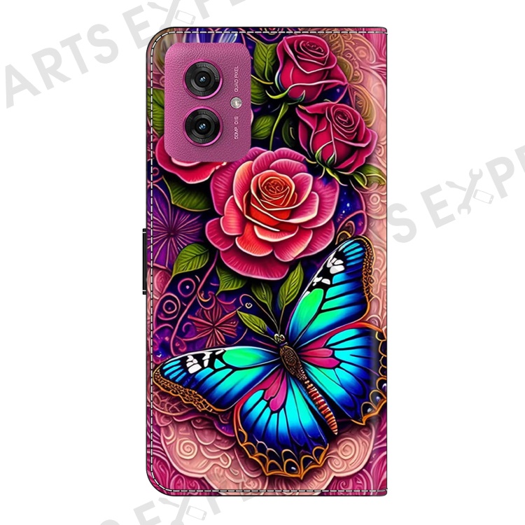 For Motorola Moto G55 5G Case PU Leather Wallet Phone Cover with Stand - Colorful Butterfly