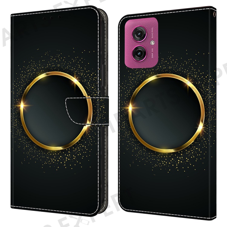 For Motorola Moto G55 5G Case PU Leather Wallet Phone Cover with Stand - Gold Ring