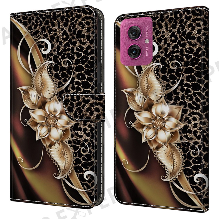 For Motorola Moto G55 5G Case PU Leather Wallet Phone Cover with Stand - Metal Flower