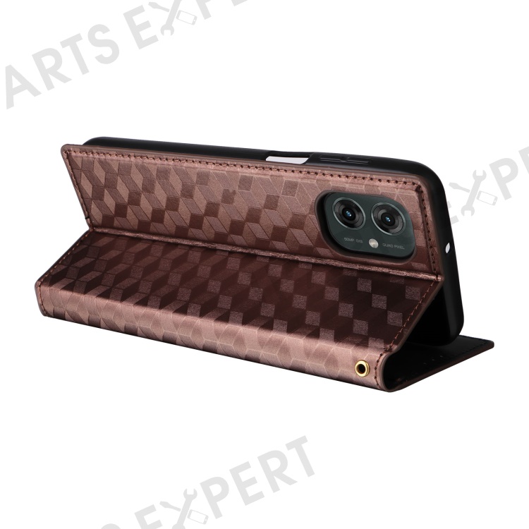 For Motorola Moto G55 5G Wallet Case Rhombus Imprinted Leather Phone Cover - Brown