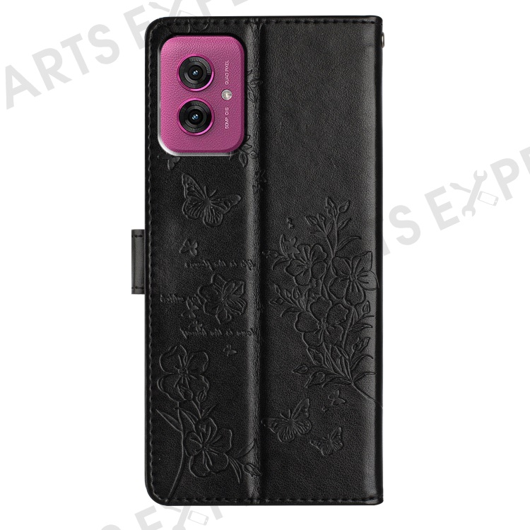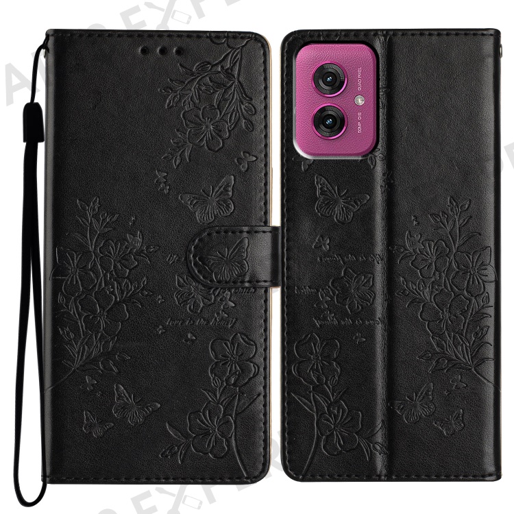 For Motorola Moto G55 5G Wallet Phone Case Butterfly Floral Imprint Leather Flip Cover - Black