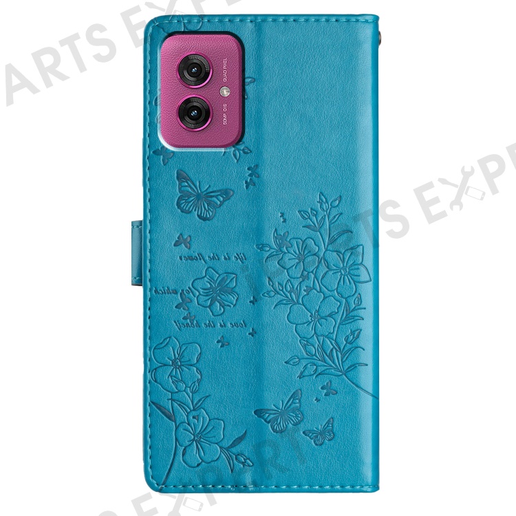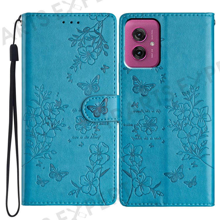 For Motorola Moto G55 5G Wallet Phone Case Butterfly Floral Imprint Leather Flip Cover - Blue
