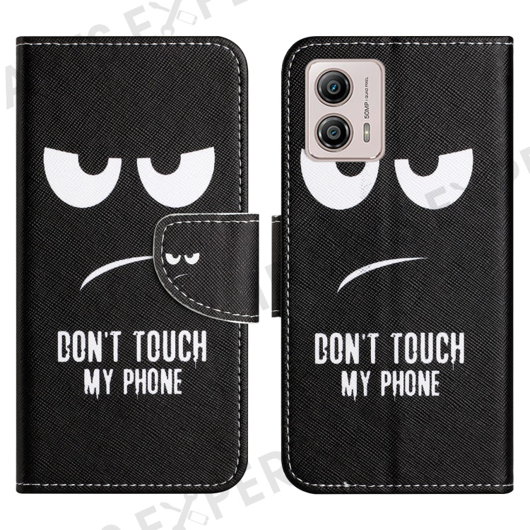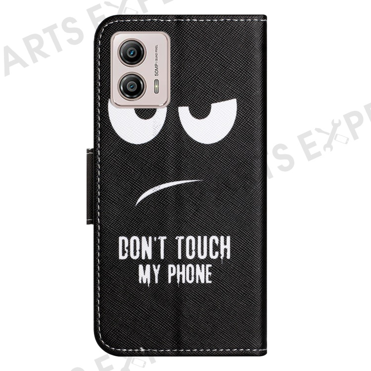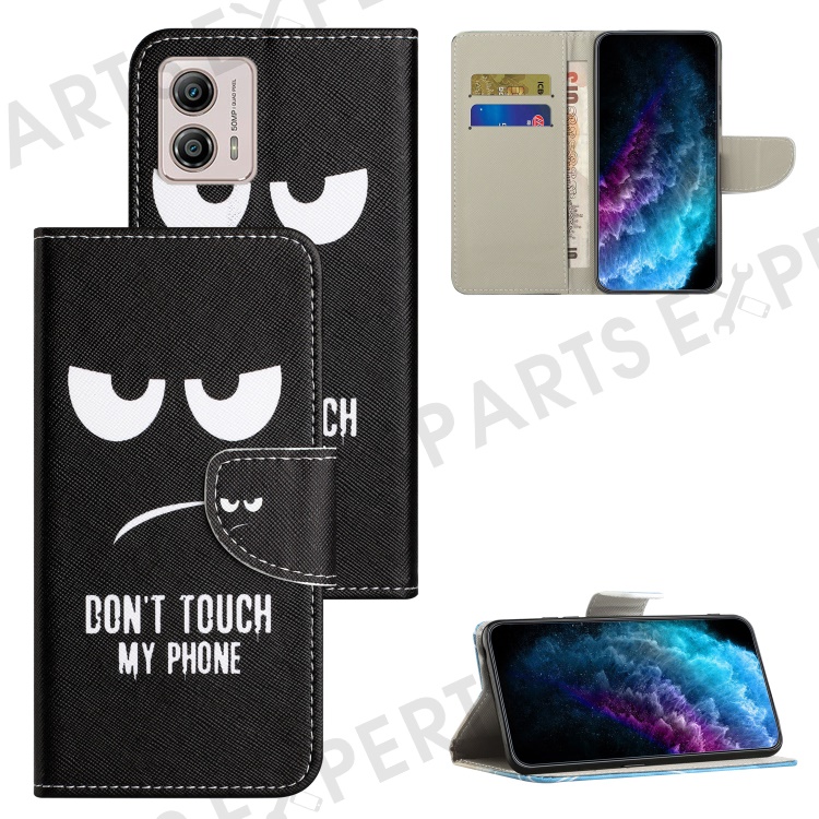 For Motorola Moto G73 5G Leather Stand Phone Case Pattern Printing Cross Texture Anti-drop Wallet Cover - Don't Touch My Phone