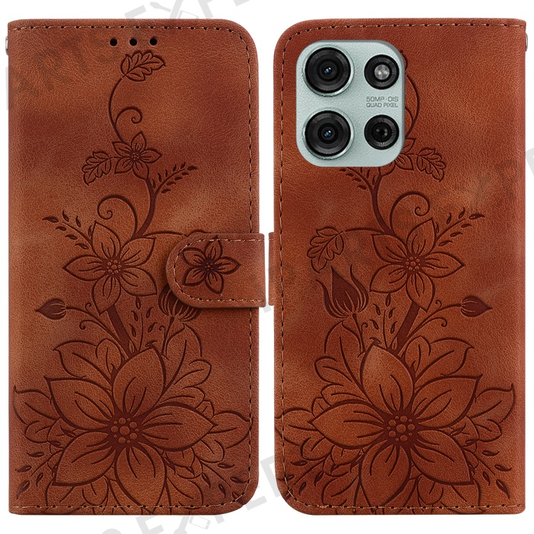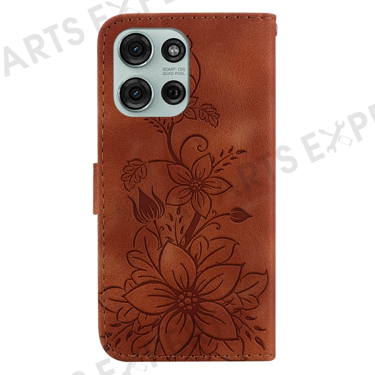 For Motorola Moto G75 5G Case Lily Flower Imprint Leather Phone Cover with Stand - Brown