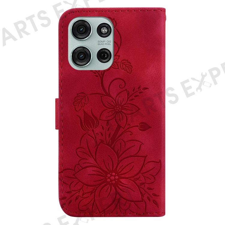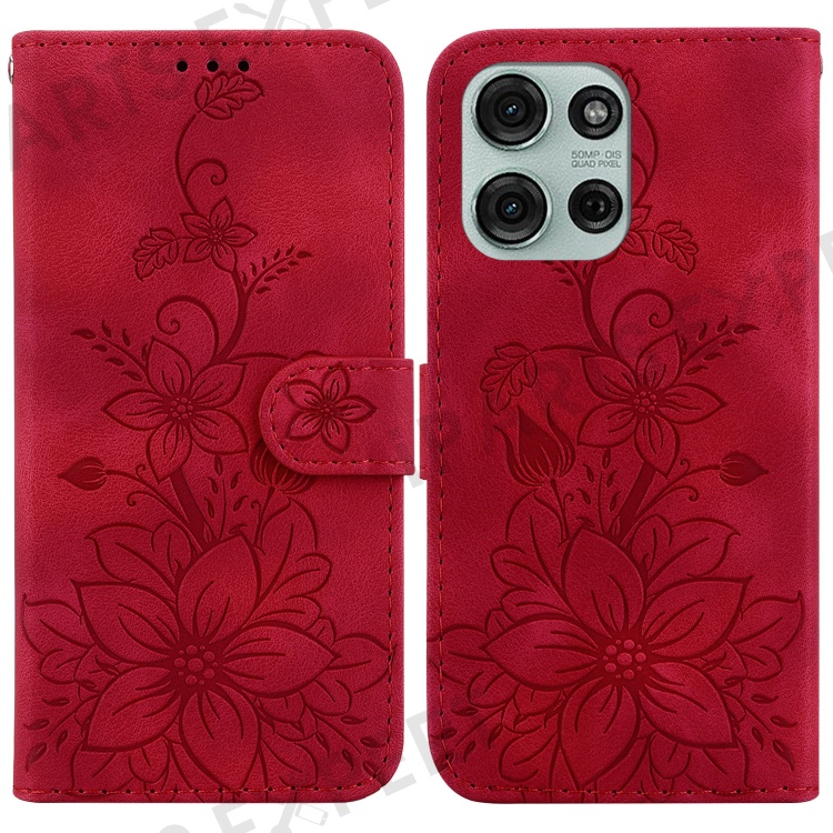 For Motorola Moto G75 5G Case Lily Flower Imprint Leather Phone Cover with Stand - Red