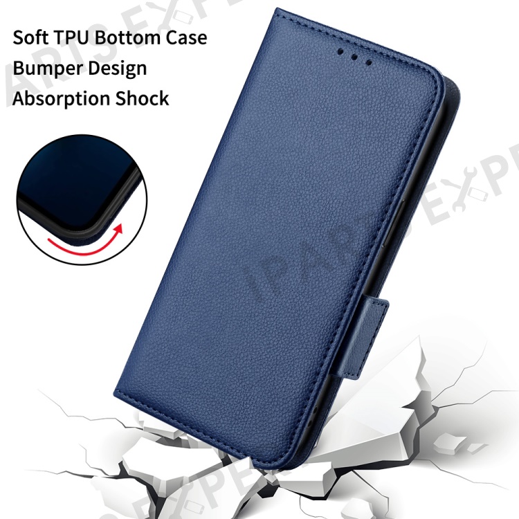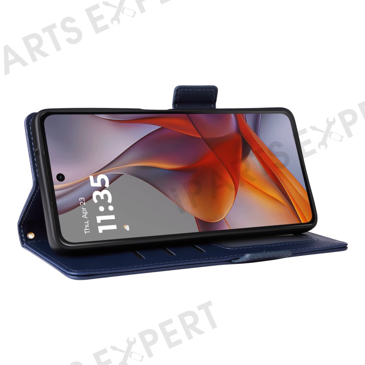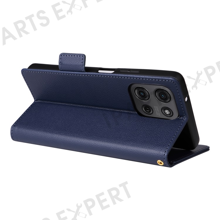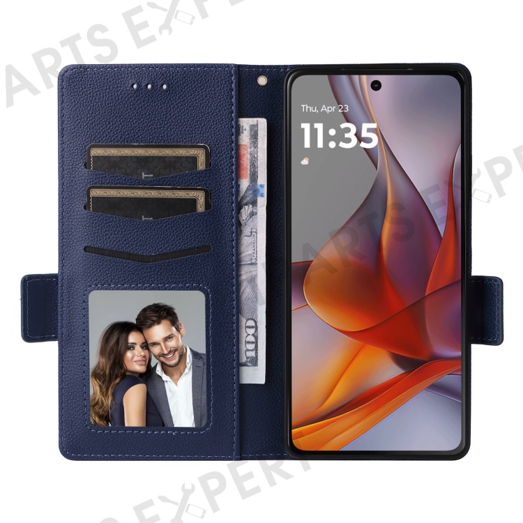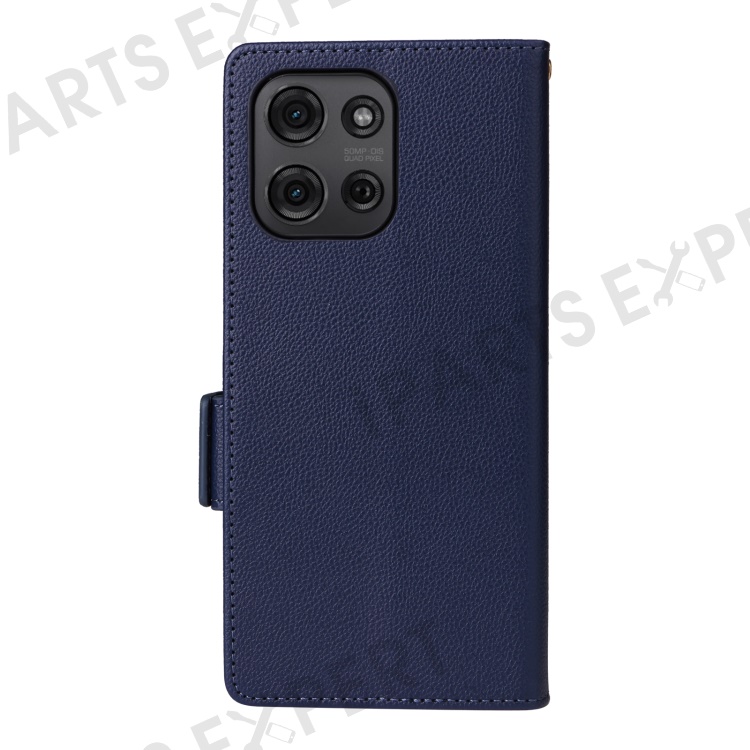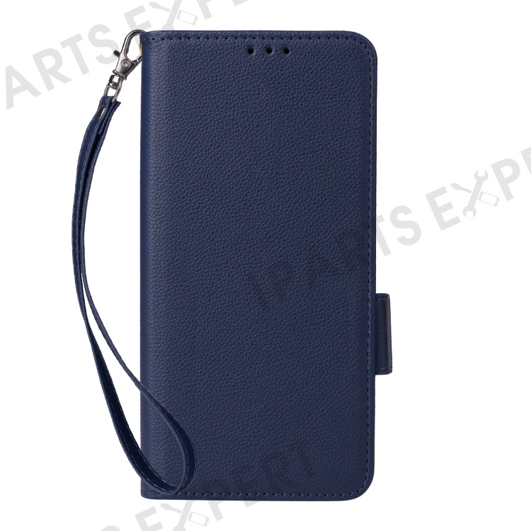 For Motorola Moto G75 5G Case with Wrist Strap Litchi Texture PU Leather Wallet Phone Cover - Dark Blue
