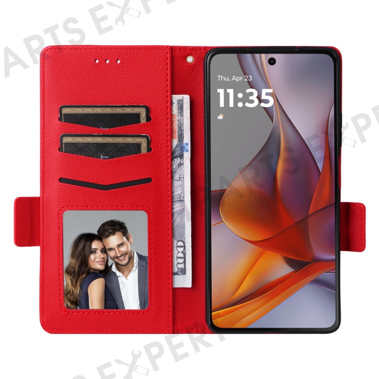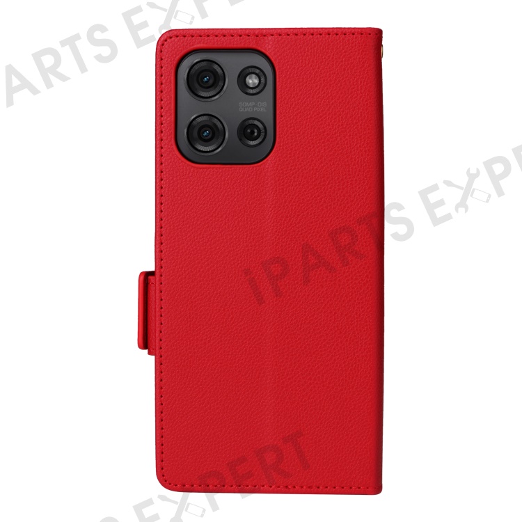 For Motorola Moto G75 5G Case with Wrist Strap Litchi Texture PU Leather Wallet Phone Cover - Red