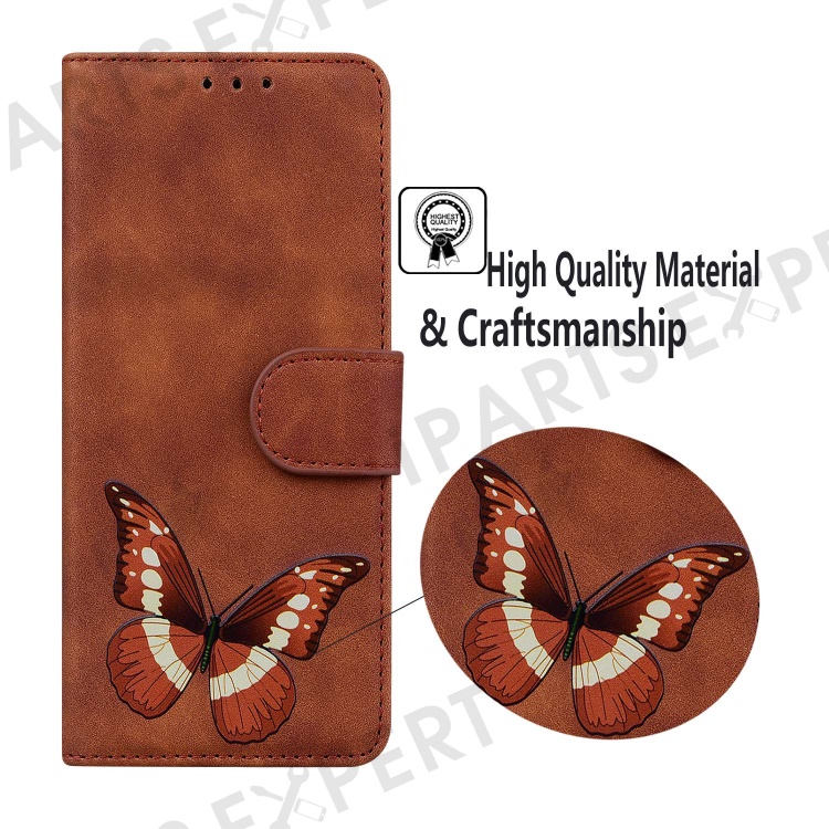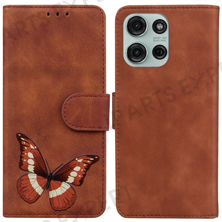 For Motorola Moto G75 5G Stand Case PU Leather Phone Cover Butterfly Printed - Brown