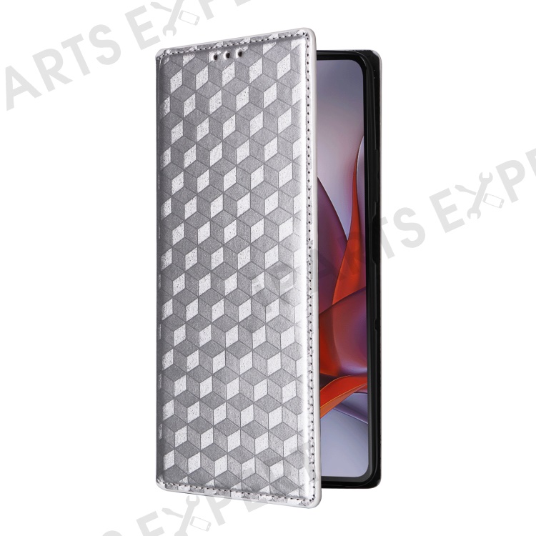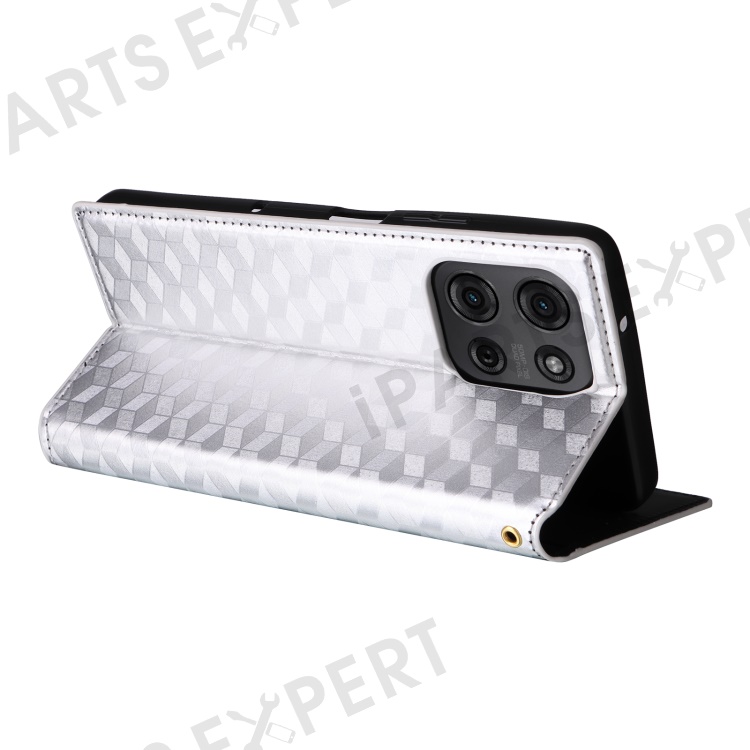 For Motorola Moto G75 5G Wallet Case Rhombus Imprinted Leather Phone Cover - Silver