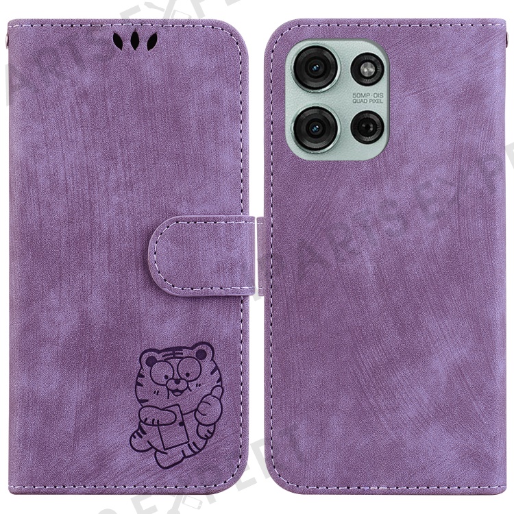 For Motorola Moto G75 5G Wallet Case Tiger Imprint Leather Shockproof Phone Cover - Purple
