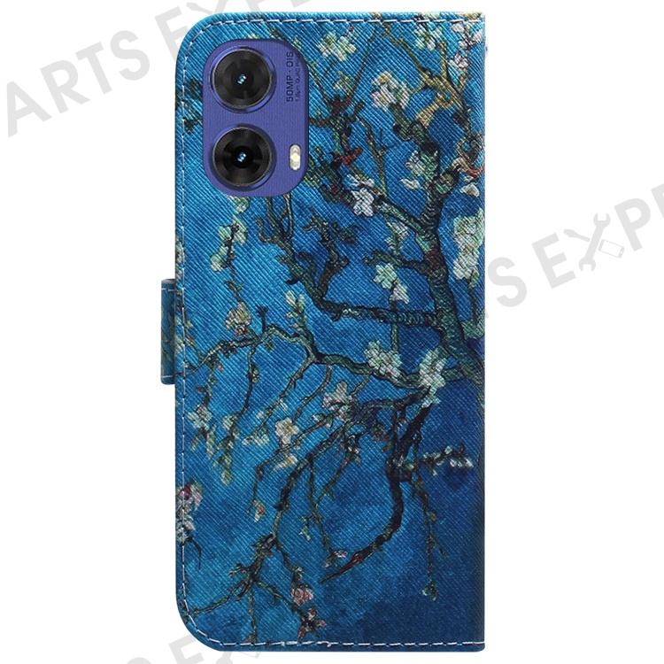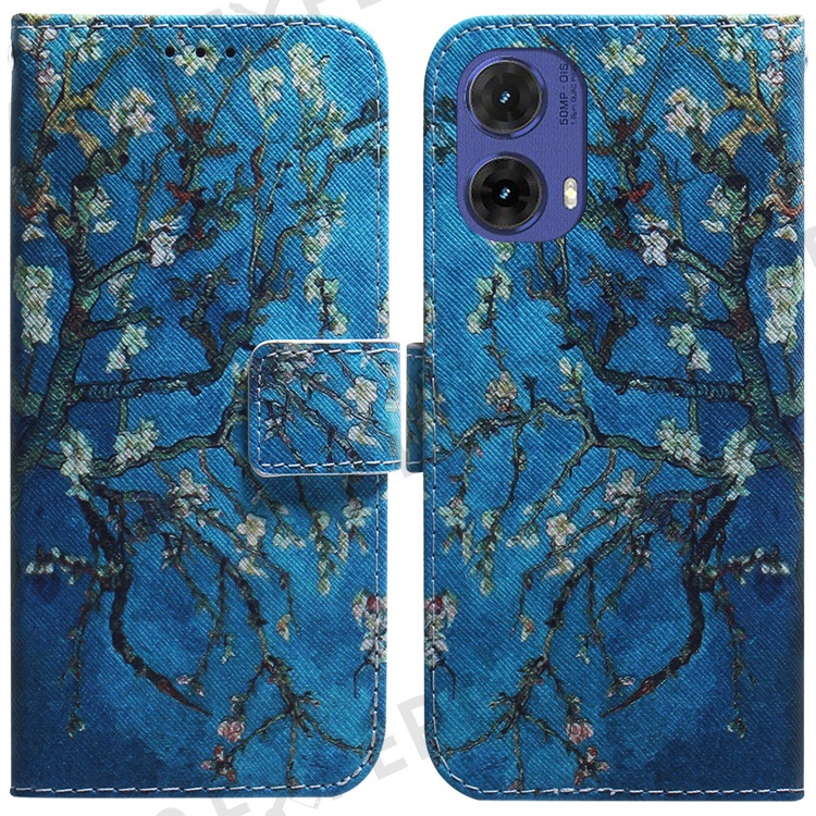 For Motorola Moto G85 5G / S50 Neo 5G Case Pattern Printing Leather Phone Cover Card Holder Stand - Apricot Flowers