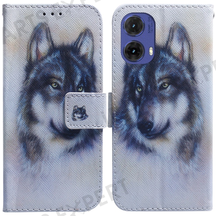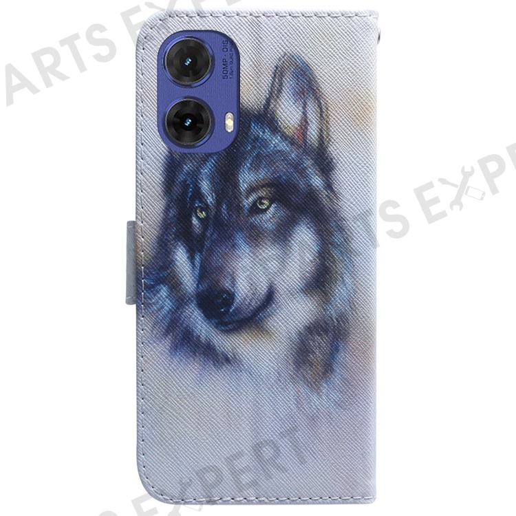For Motorola Moto G85 5G / S50 Neo 5G Case Pattern Printing Leather Phone Cover Card Holder Stand - Wolf