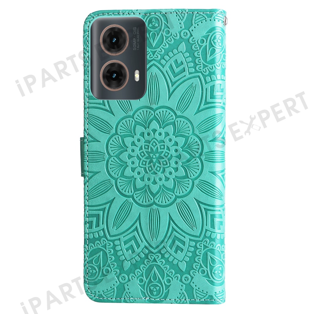 For Motorola Moto G85 5G / S50 Neo 5G Case Sunflower Imprint Leather Wallet Phone Cover - Green