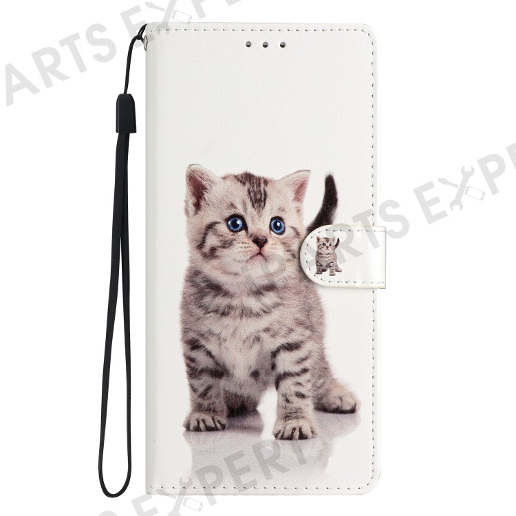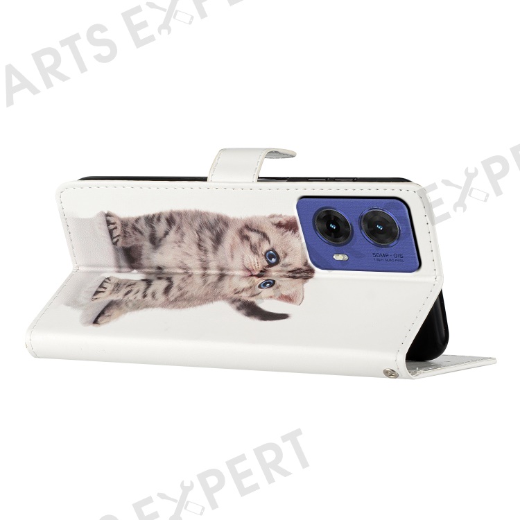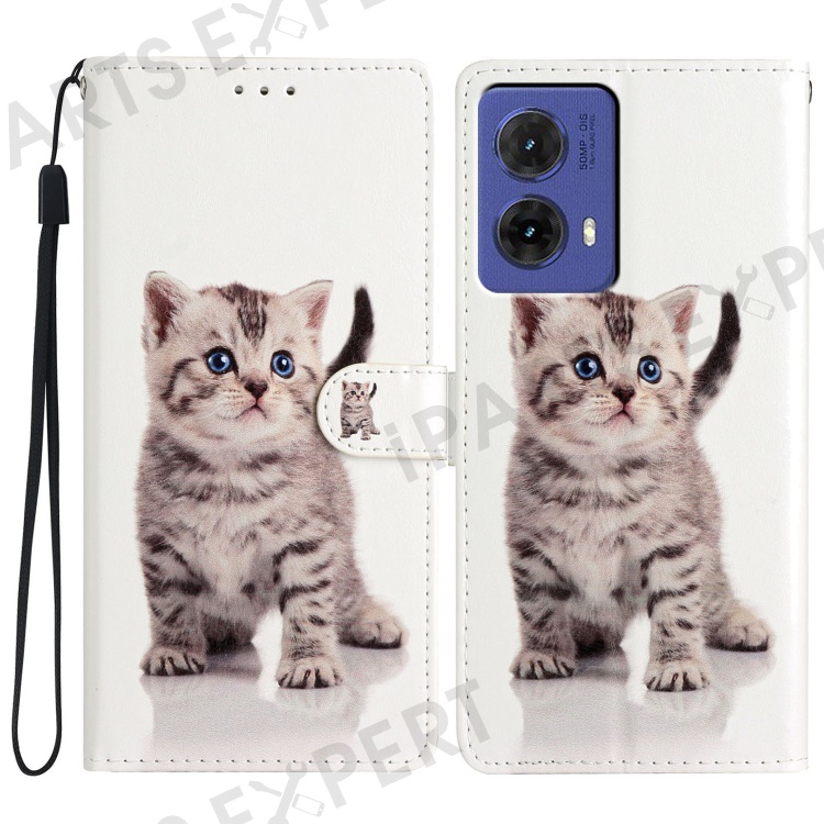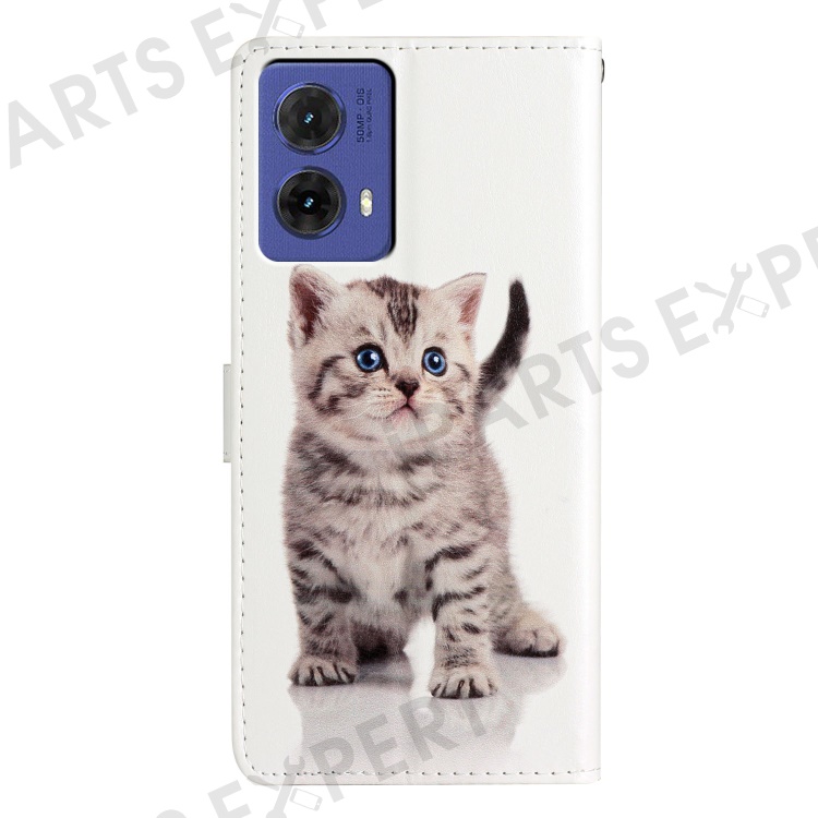 For Motorola Moto G85 5G Wallet Case PU Leather Pattern Printing Stand Phone Cover with Strap - Cute Cat