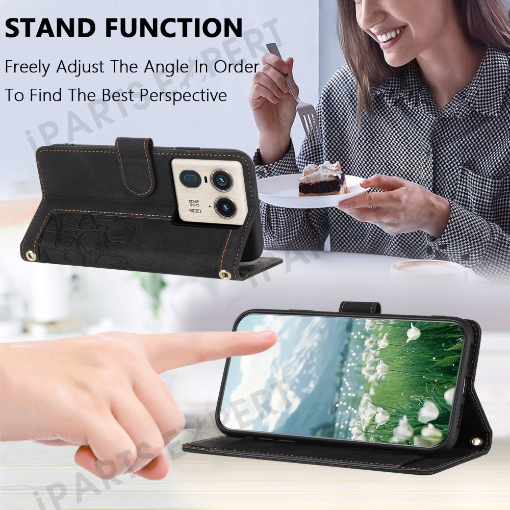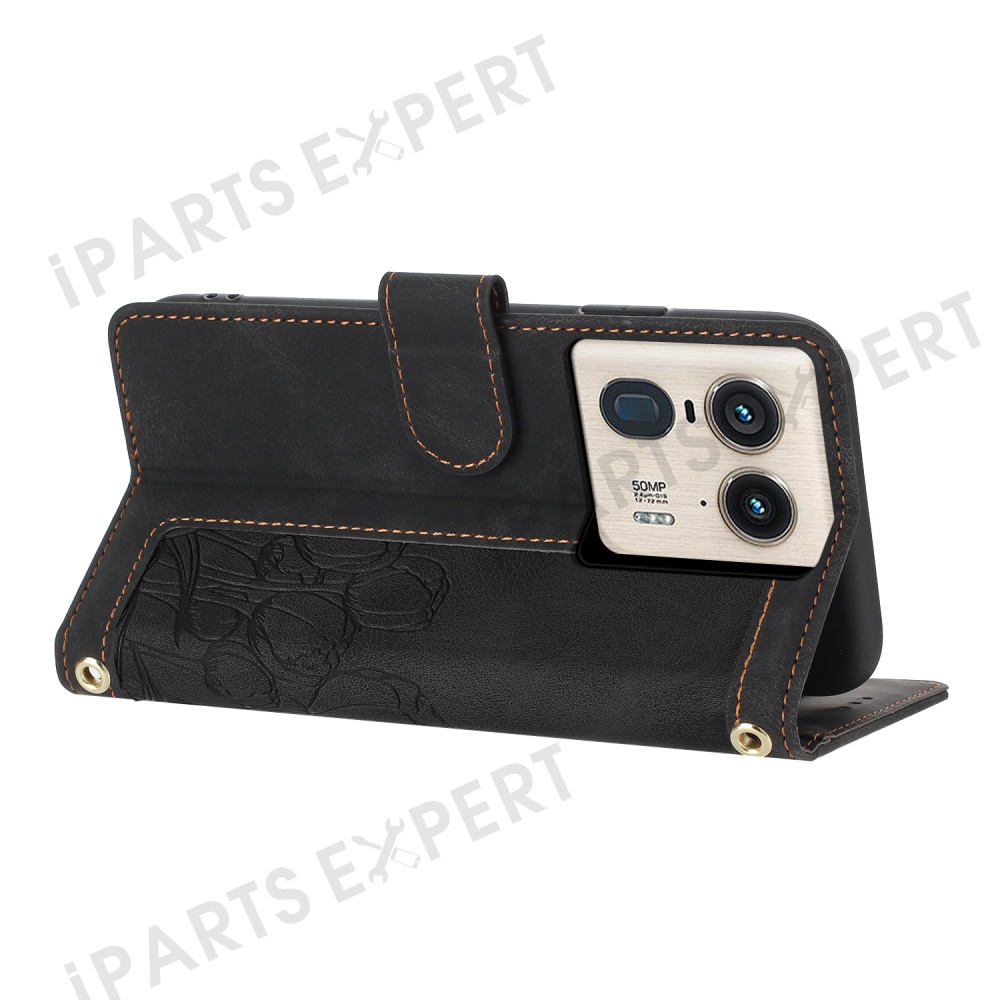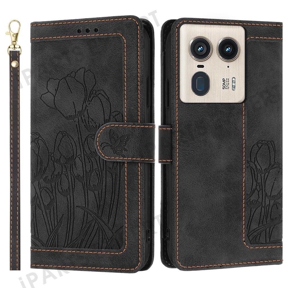 For Motorola Moto X50 Ultra 5G / Edge 50 Ultra 5G Tulip Leather Case Phone Cover with 5 Card Slots Wallet - Black