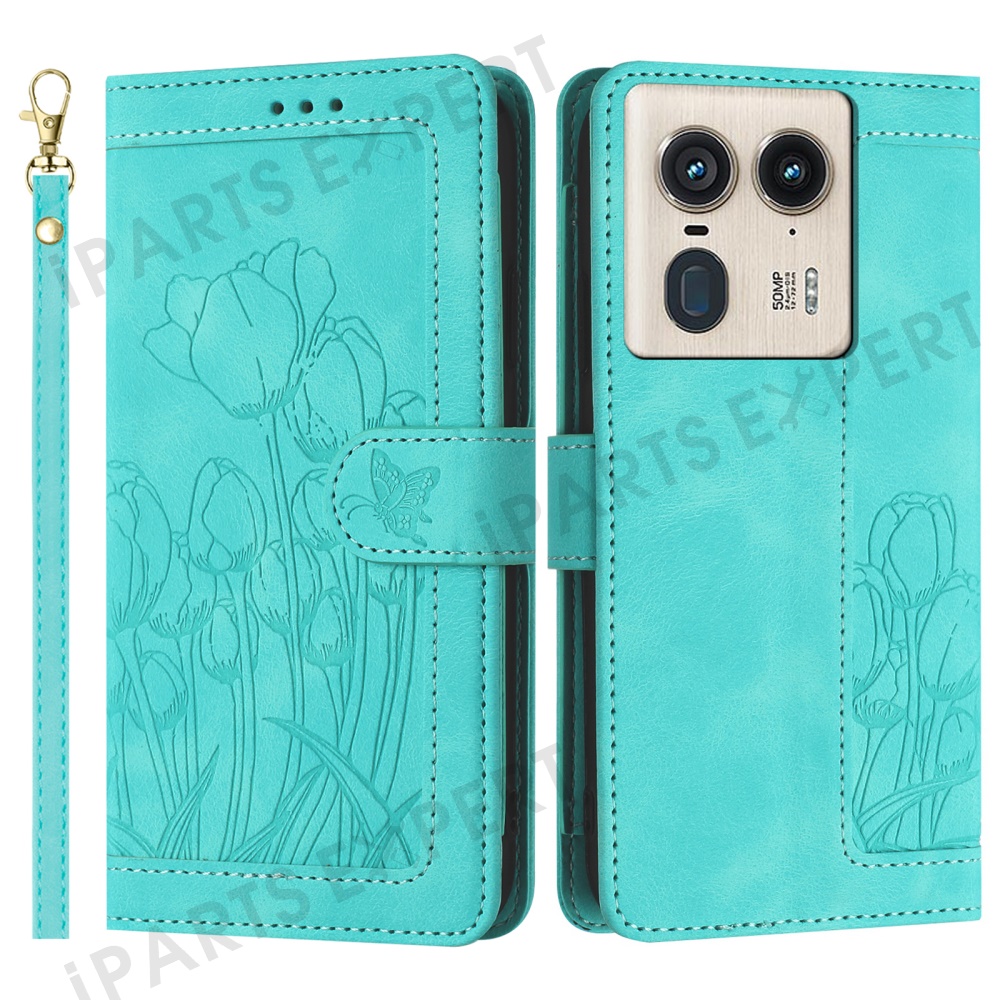 For Motorola Moto X50 Ultra 5G / Edge 50 Ultra 5G Tulip Leather Case Phone Cover with 5 Card Slots Wallet - Green