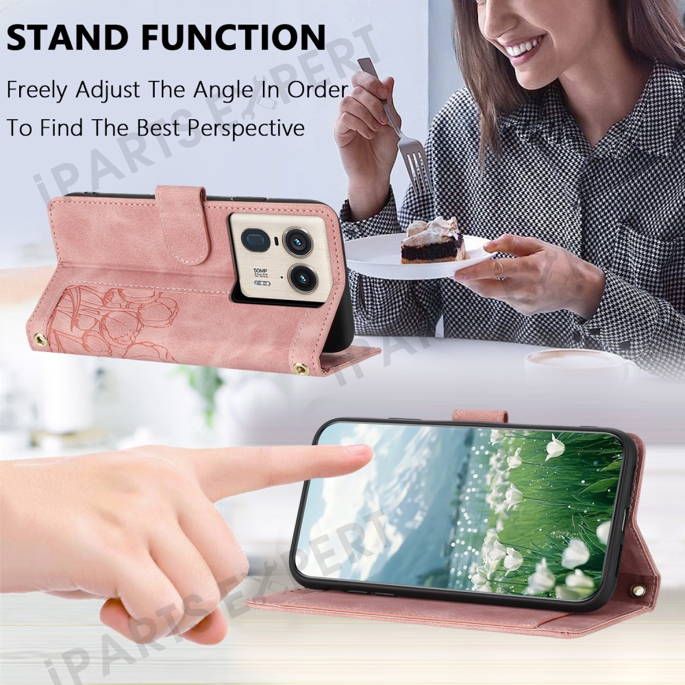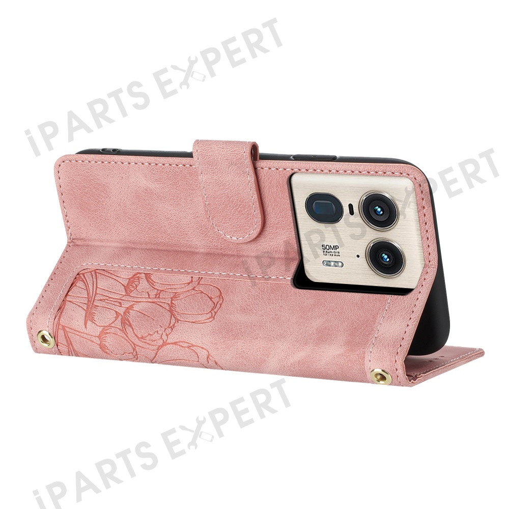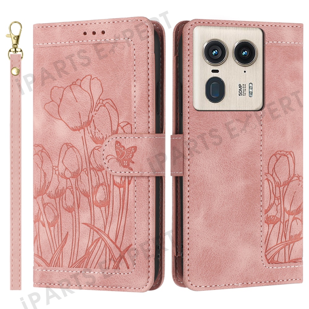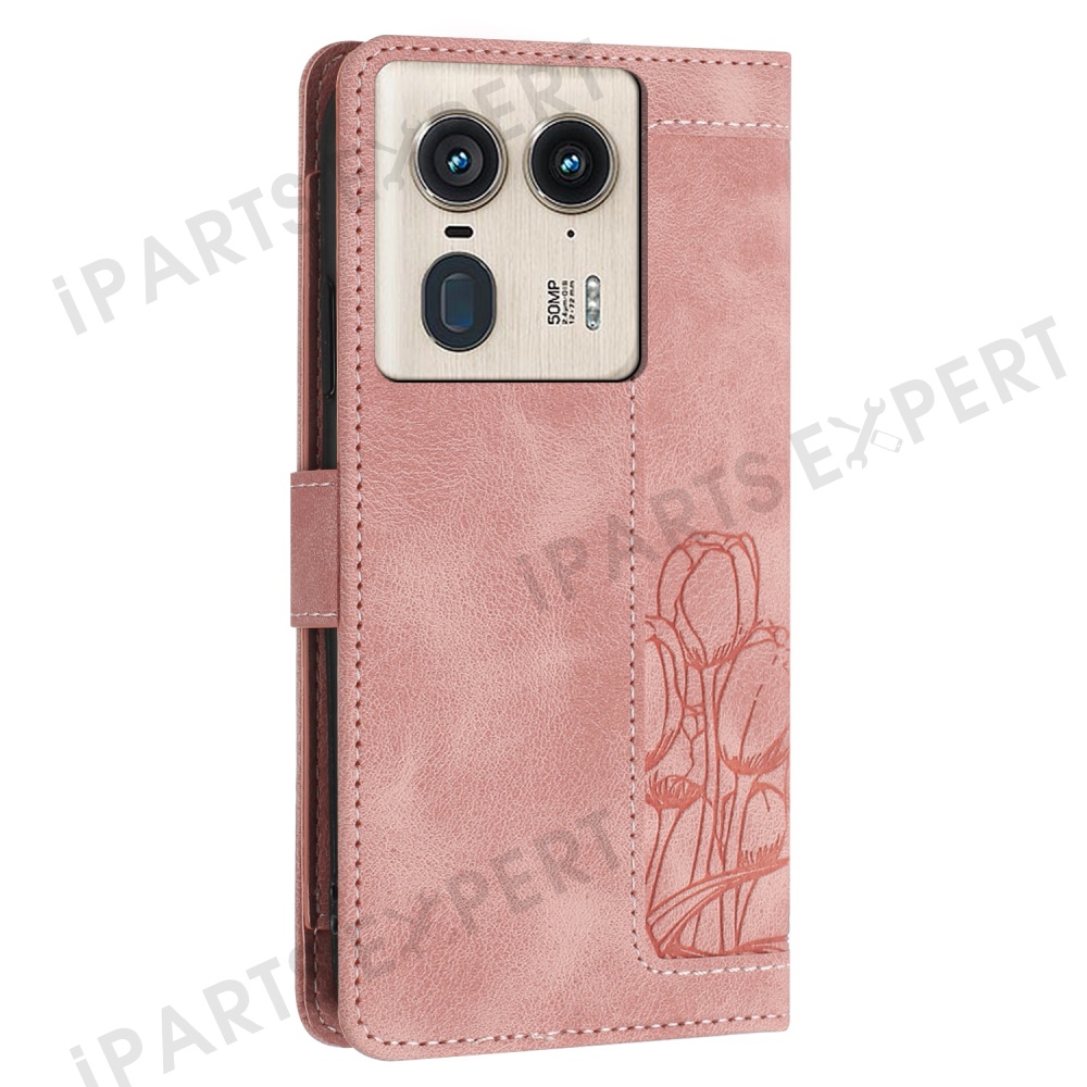 For Motorola Moto X50 Ultra 5G / Edge 50 Ultra 5G Tulip Leather Case Phone Cover with 5 Card Slots Wallet - Pink