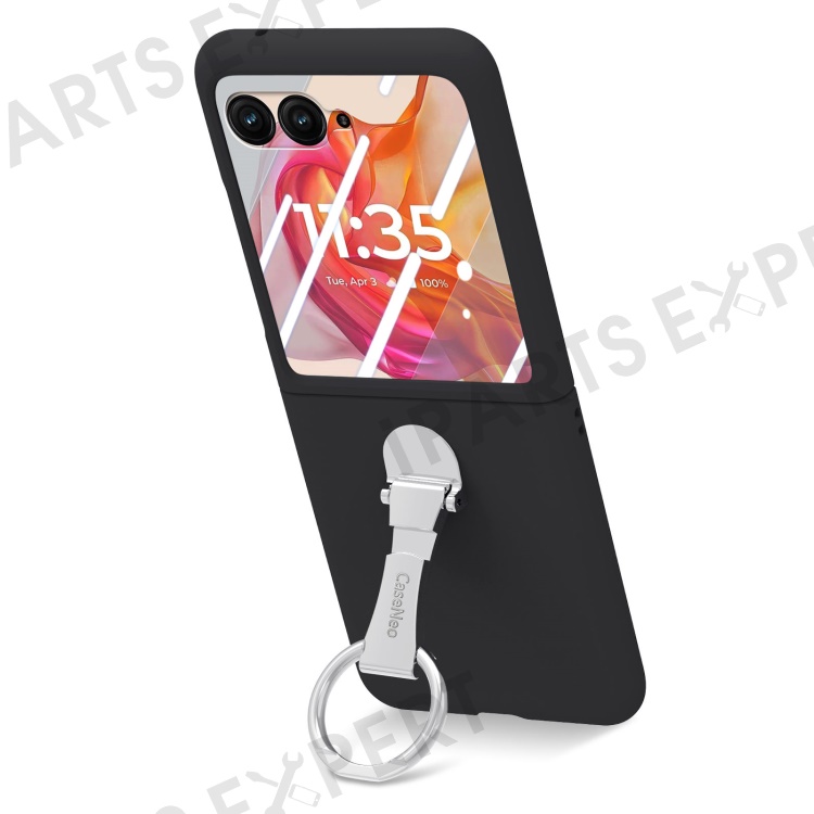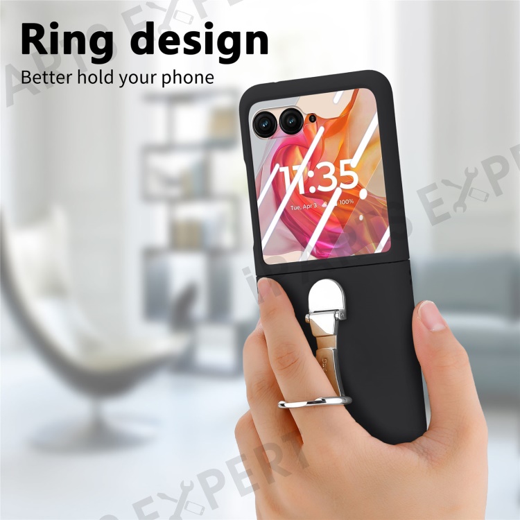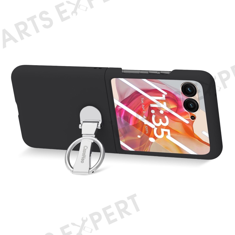 For Motorola Razr 50 Ultra 5G Case Ring Kickstand PC Phone Cover with Tempered Glass Rear Screen Film - Black