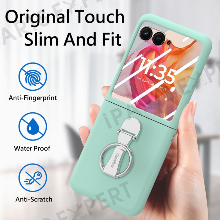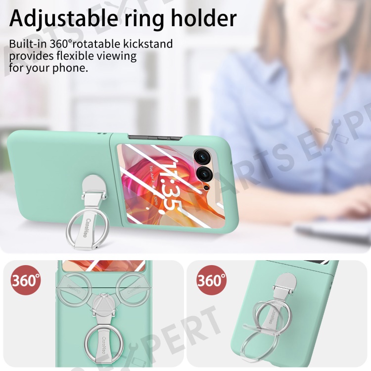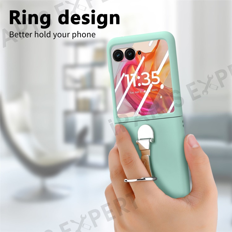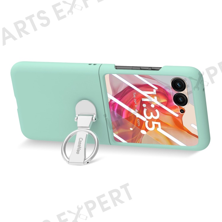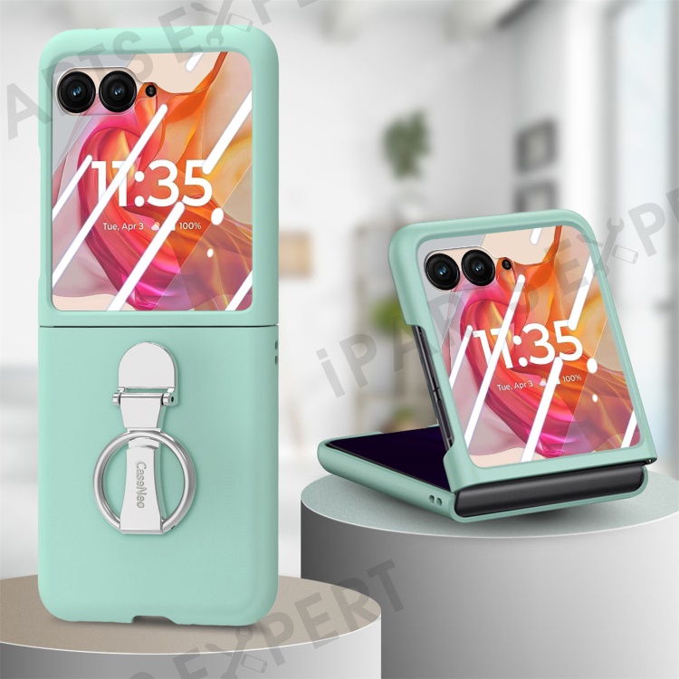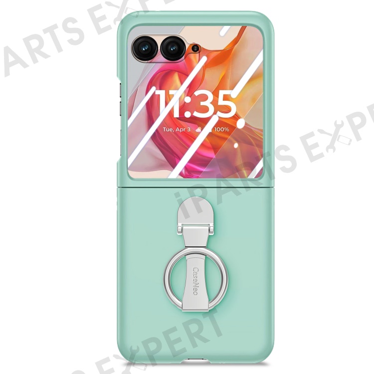 For Motorola Razr 50 Ultra 5G Case Ring Kickstand PC Phone Cover with Tempered Glass Rear Screen Film - Light Green