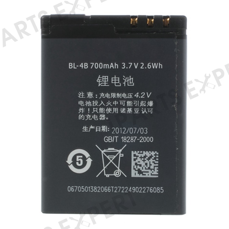 For Nokia 2630 / 2660 / 2760 / 5000 / 6111 / 7370 / 7373 / N76 / 7070 / 7500 3.70V 700mAh Rechargeable Li-ion Battery (Encode: BL-4B) (without Logo)
