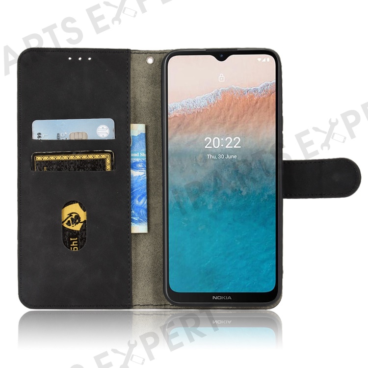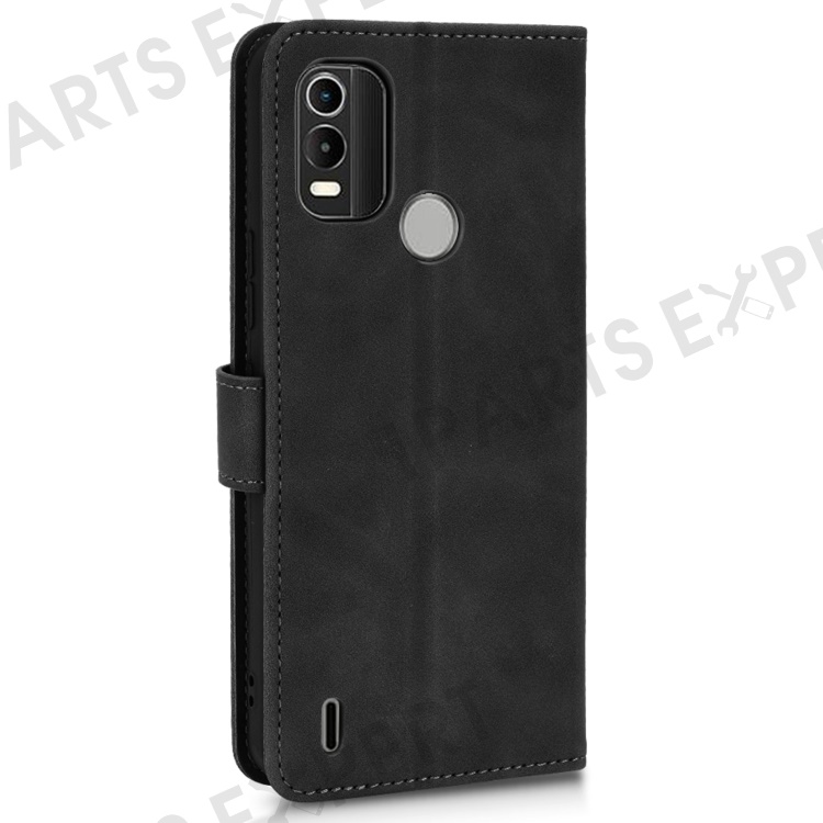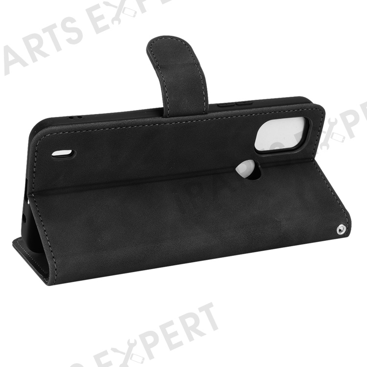For Nokia C21 Plus 4G Soft Skin-Touch Feeling PU Leather Case Stand Magnetic Closure Full Protective Folio Wallet Cover - Black