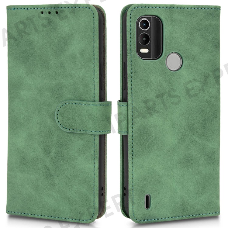 For Nokia C21 Plus 4G Soft Skin-Touch Feeling PU Leather Case Stand Magnetic Closure Full Protective Folio Wallet Cover - Green