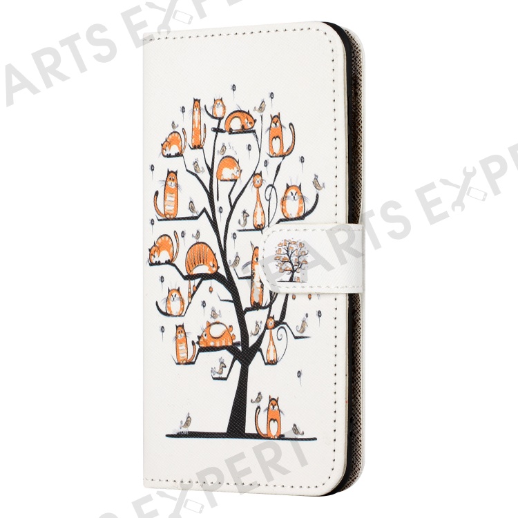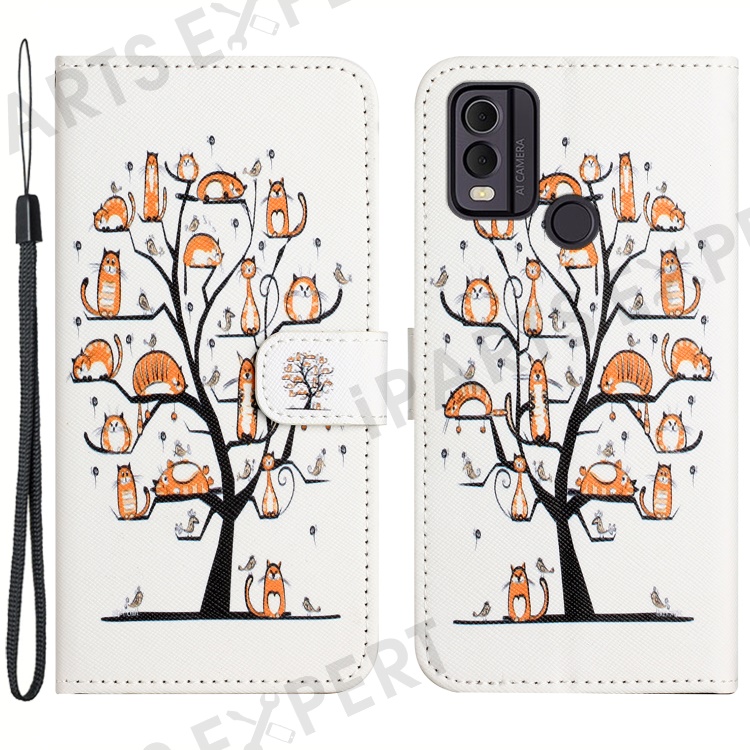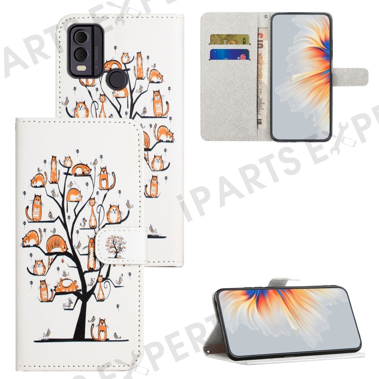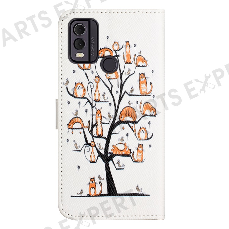 For Nokia C32 / C22 PU Leather Wallet Phone Case 3D Pattern Printing Phone Stand Cover - Cat and Tree