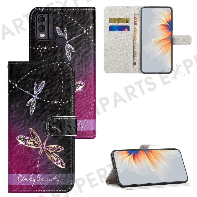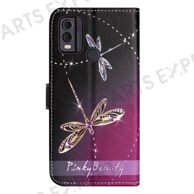 For Nokia C32 / C22 PU Leather Wallet Phone Case 3D Pattern Printing Phone Stand Cover - Dragonflies