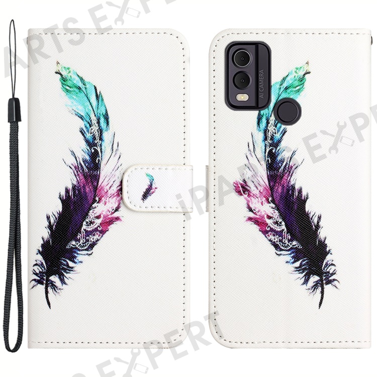 For Nokia C32 / C22 PU Leather Wallet Phone Case 3D Pattern Printing Phone Stand Cover - Feather