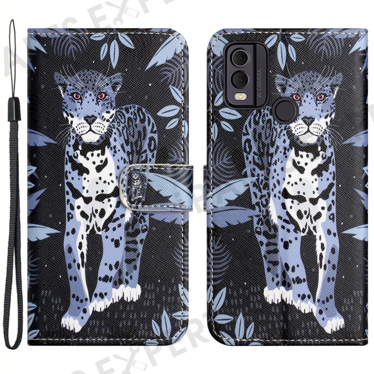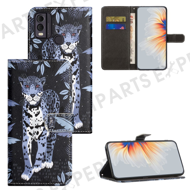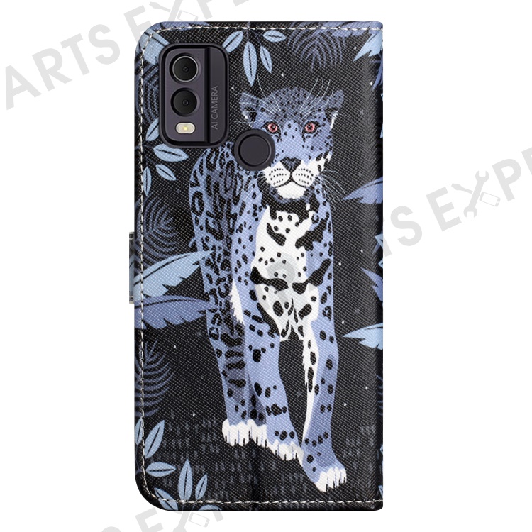For Nokia C32 / C22 PU Leather Wallet Phone Case 3D Pattern Printing Phone Stand Cover - Leopard