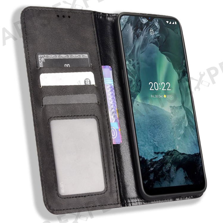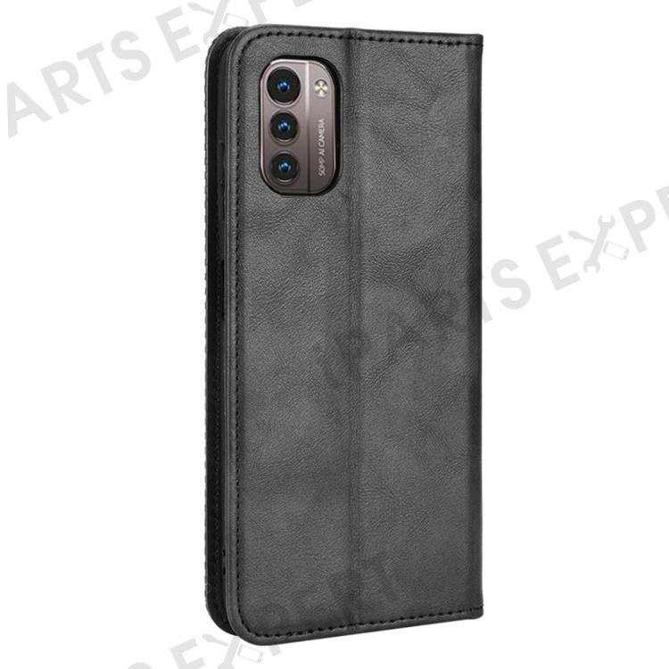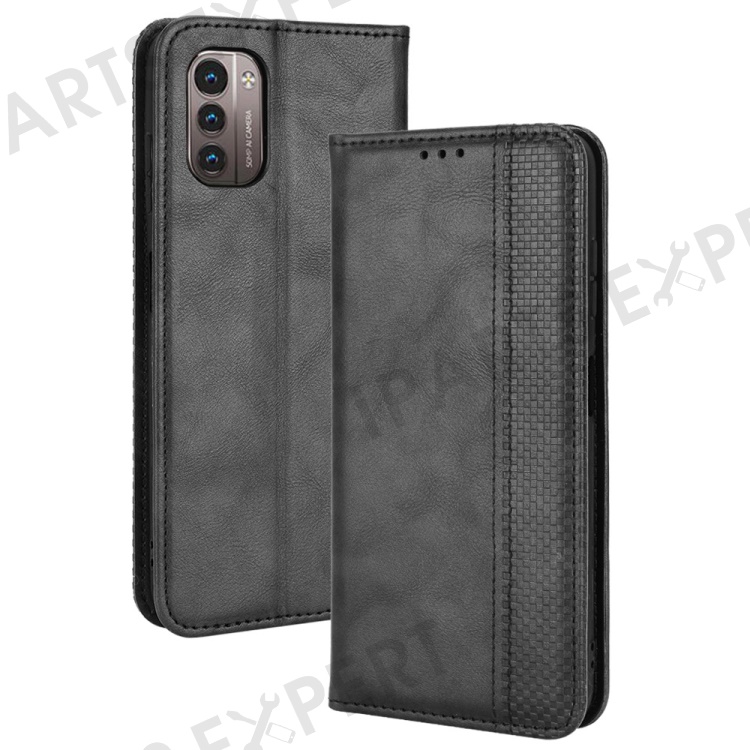 For Nokia G21 / G11 Vintage Mosaic Imprinted Flip Leather Case Stand Bookstyle Magnetic Auto-absorbed Wallet Cover - Black