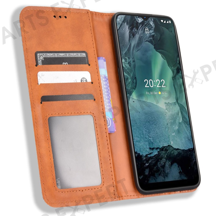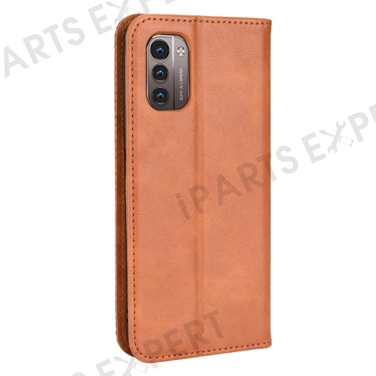 For Nokia G21 / G11 Vintage Mosaic Imprinted Flip Leather Case Stand Bookstyle Magnetic Auto-absorbed Wallet Cover - Brown