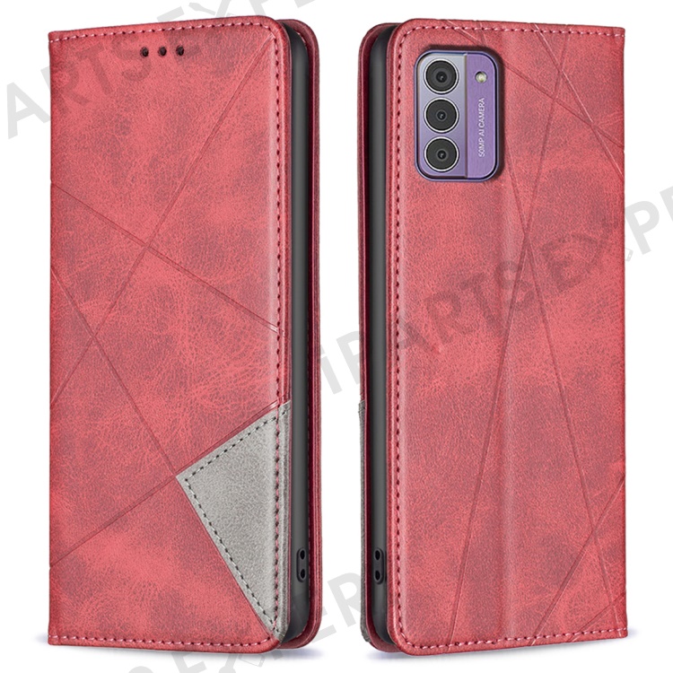 For Nokia G42 Stand Leather Phone Cover Imprinted Line Cell Phone Case with Card Slots - Red