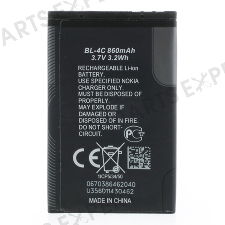 For Nokia X2 Dual SIM / 7270 / 6301 / 6136 / 6260 / 3500c / 2650 / 1661 / 1202 3.70V 860mAh Rechargeable Li-ion Battery (Encode: BL-4C) (without Logo)