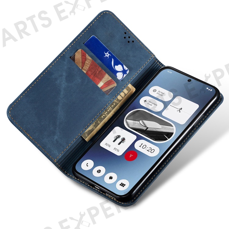 For Nothing CMF Phone 1 Case Jeans Cloth Texture Anti-Scratch Leather Stand Phone Cover - Blue