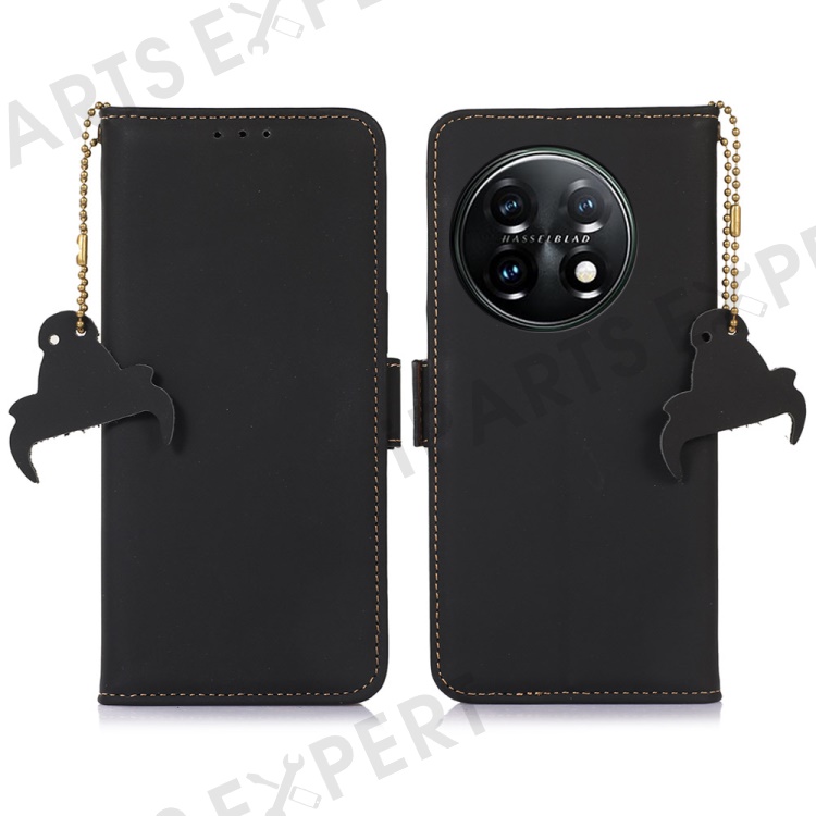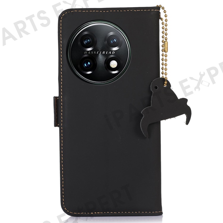 For OnePlus 11 5G Phone Case Genuine Leather Flip Cover RFID Blocking Wallet Case - Black