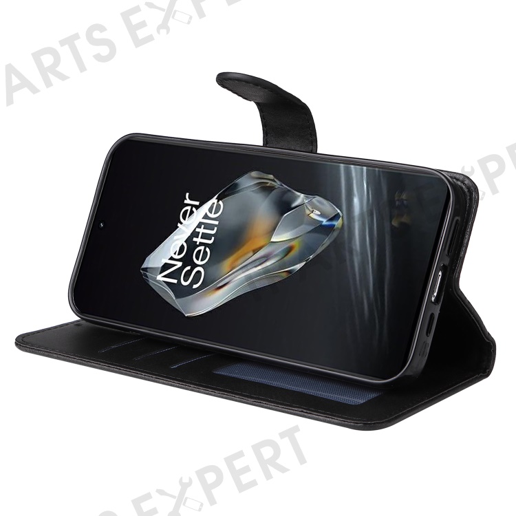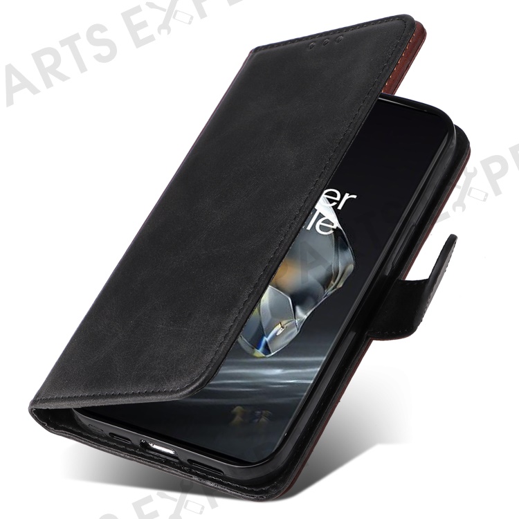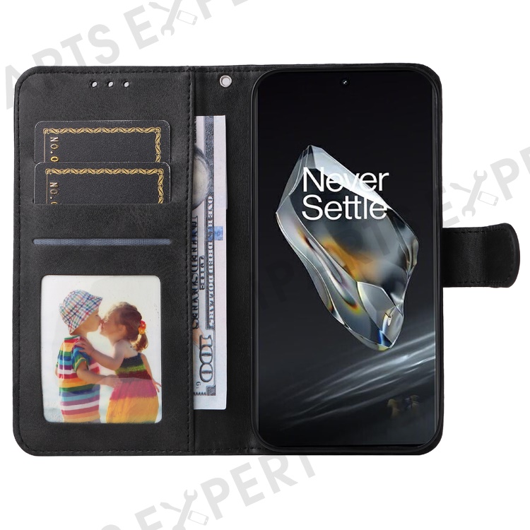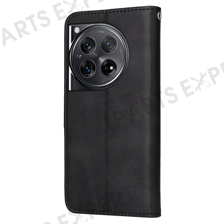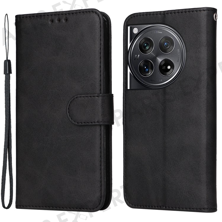 For OnePlus 12 5G Cell Phone Case Wrist Strap Leather Phone Cover Wallet with Stand - Black