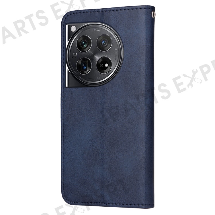 For OnePlus 12 5G Cell Phone Case Wrist Strap Leather Phone Cover Wallet with Stand - Blue