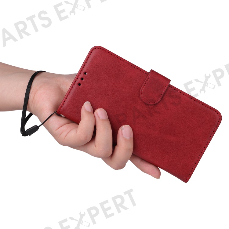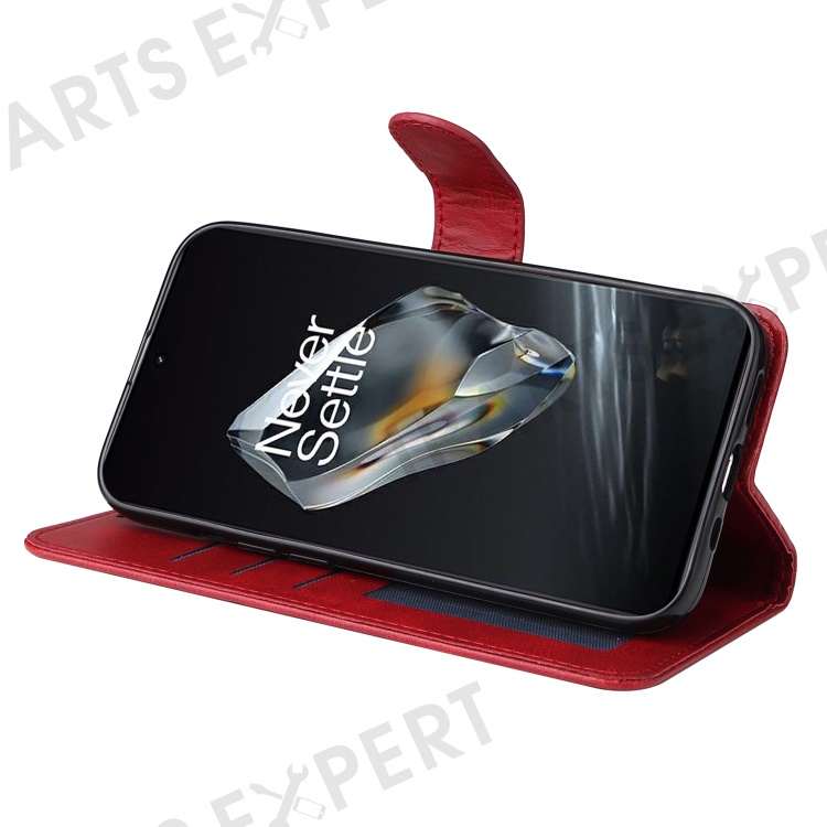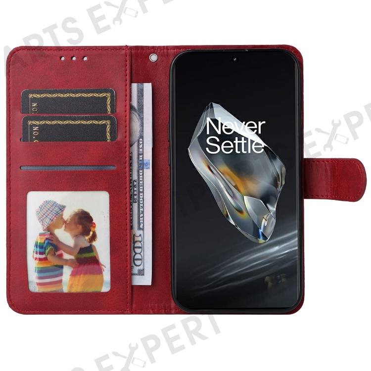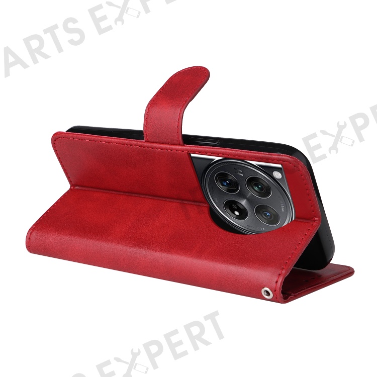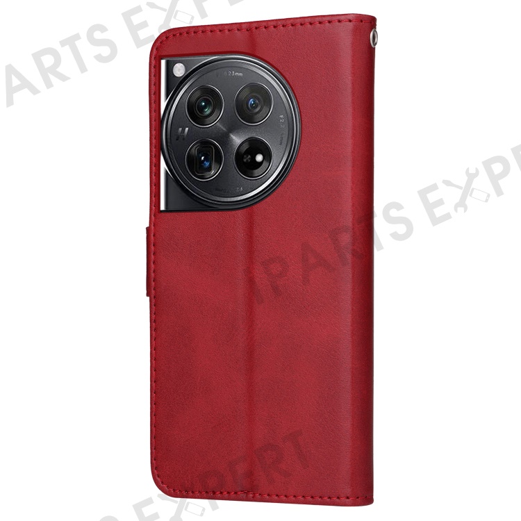 For OnePlus 12 5G Cell Phone Case Wrist Strap Leather Phone Cover Wallet with Stand - Red