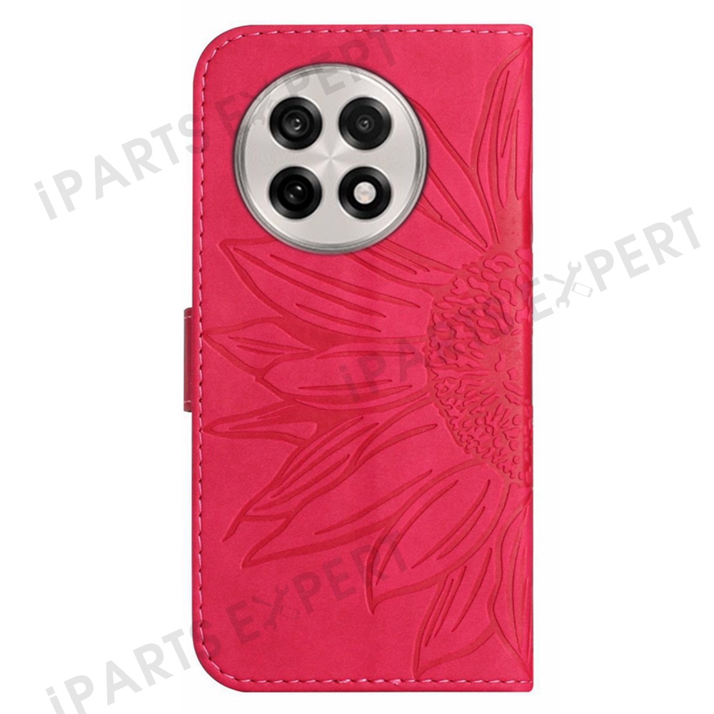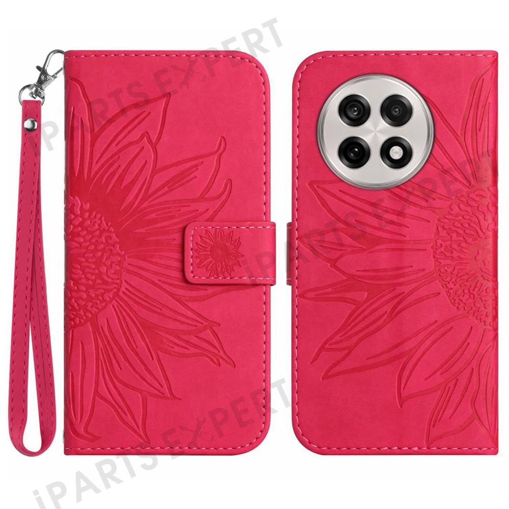 For OnePlus 13 Case Sunflower Imprint Leather Wallet Phone Cover with Wrist Strap - Rose