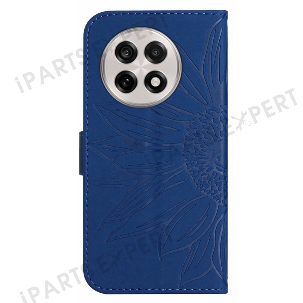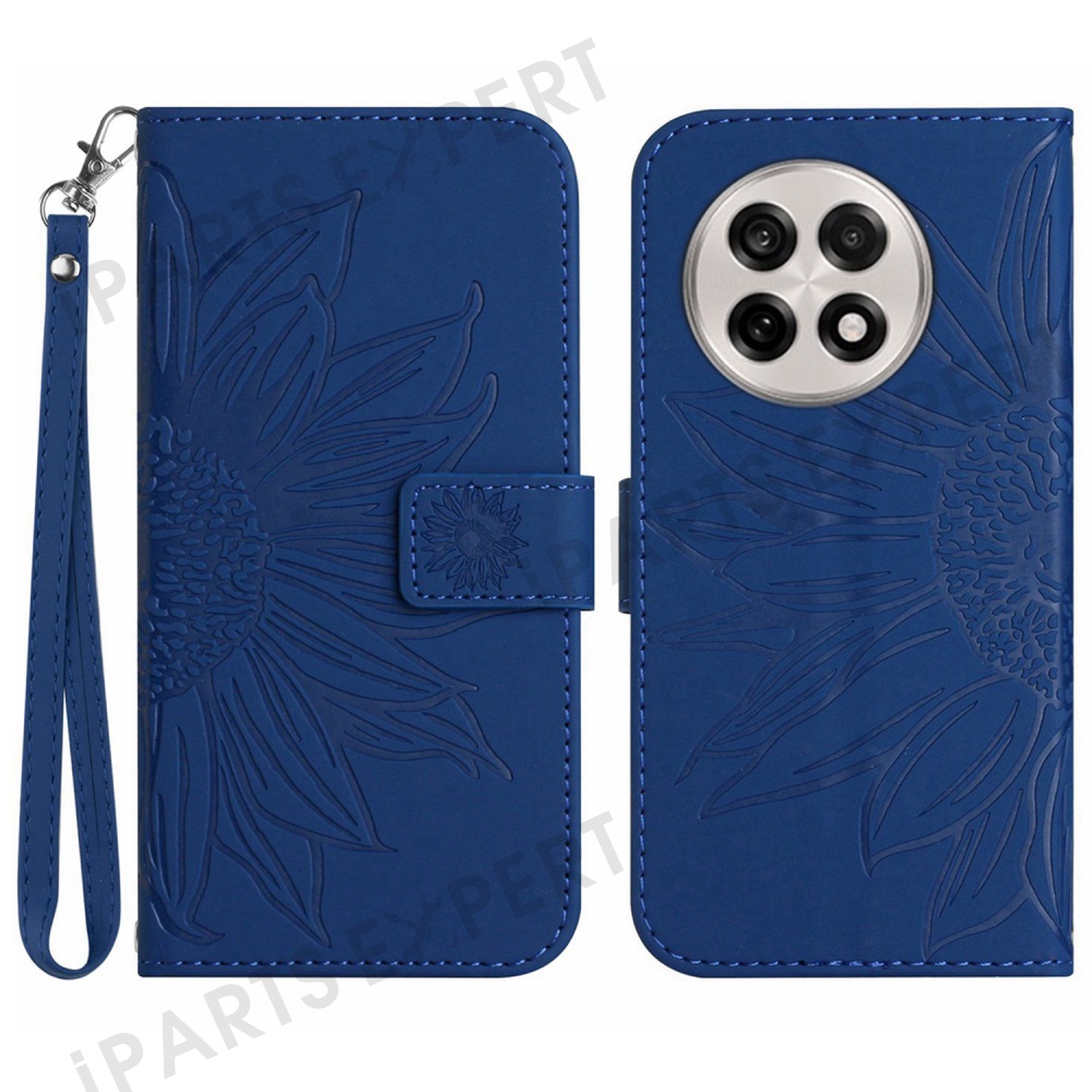 For OnePlus 13 Case Sunflower Imprint Leather Wallet Phone Cover with Wrist Strap - Sapphire