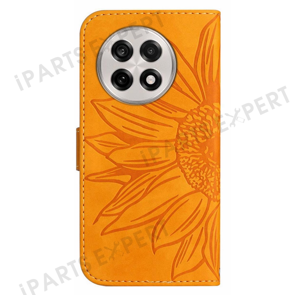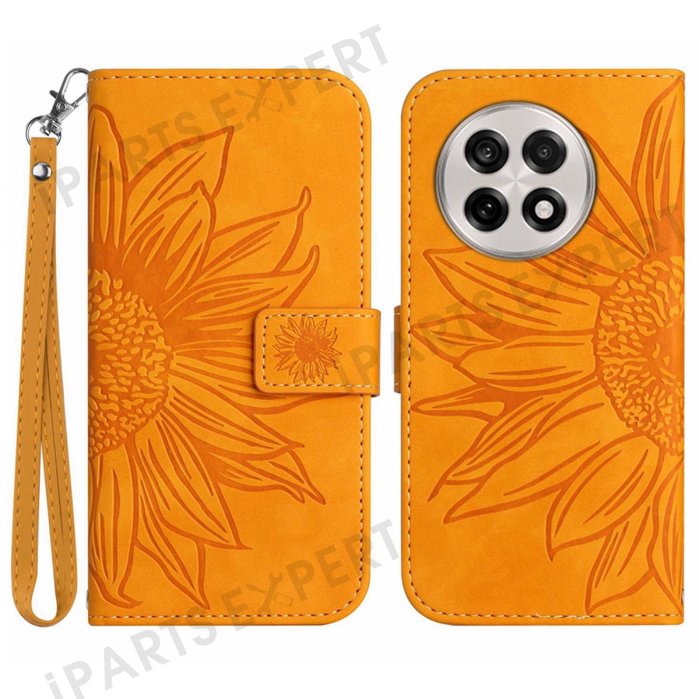 For OnePlus 13 Case Sunflower Imprint Leather Wallet Phone Cover with Wrist Strap - Yellow