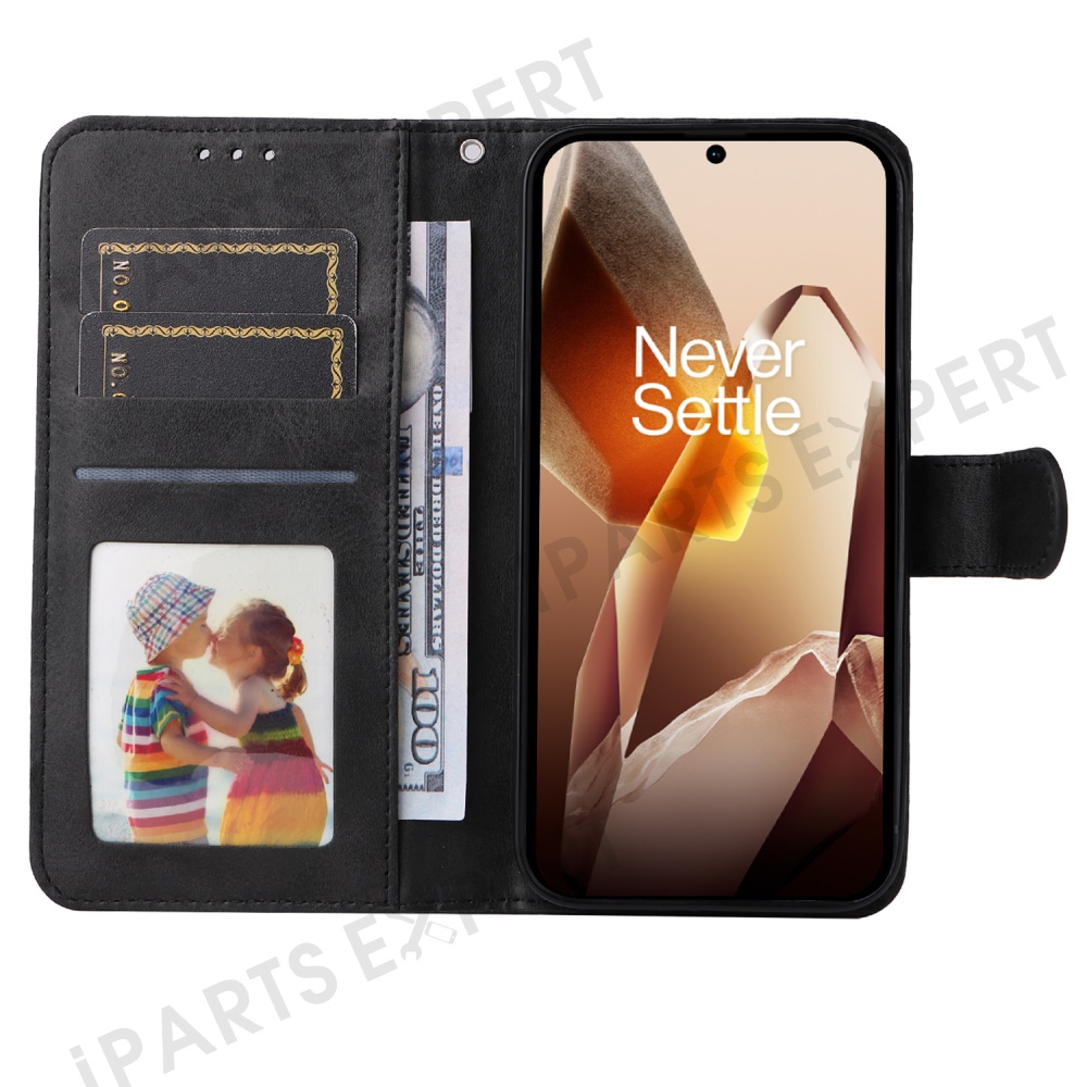 For OnePlus 13 Case Wallet PU Leather Folio Flip Phone Cover - Black