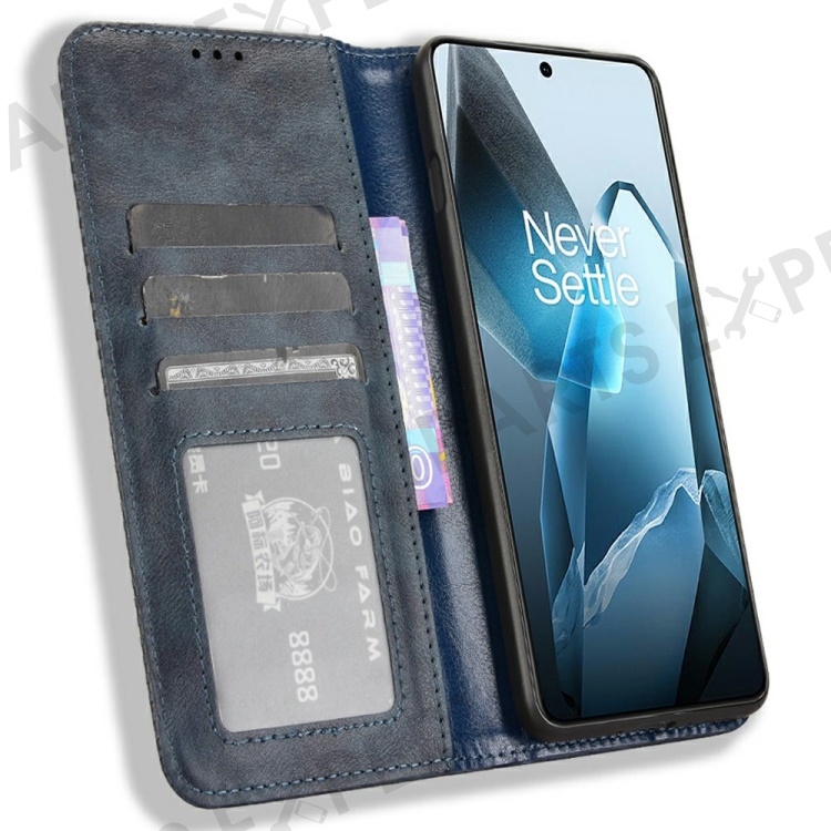 For OnePlus 13 Leather Case Wallet Stand Retro Texture Phone Cover - Blue