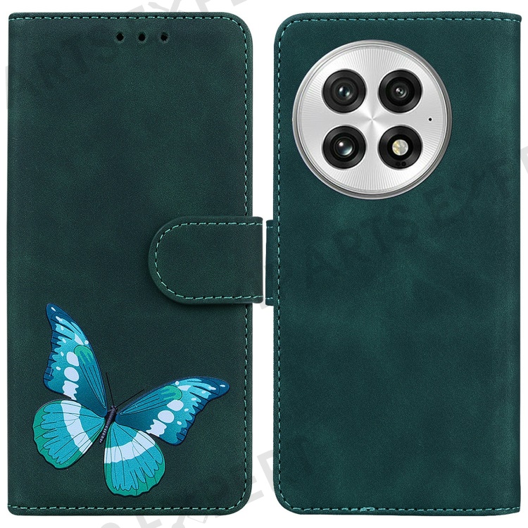 For OnePlus 13 Stand Case PU Leather Phone Cover Butterfly Printed - Green