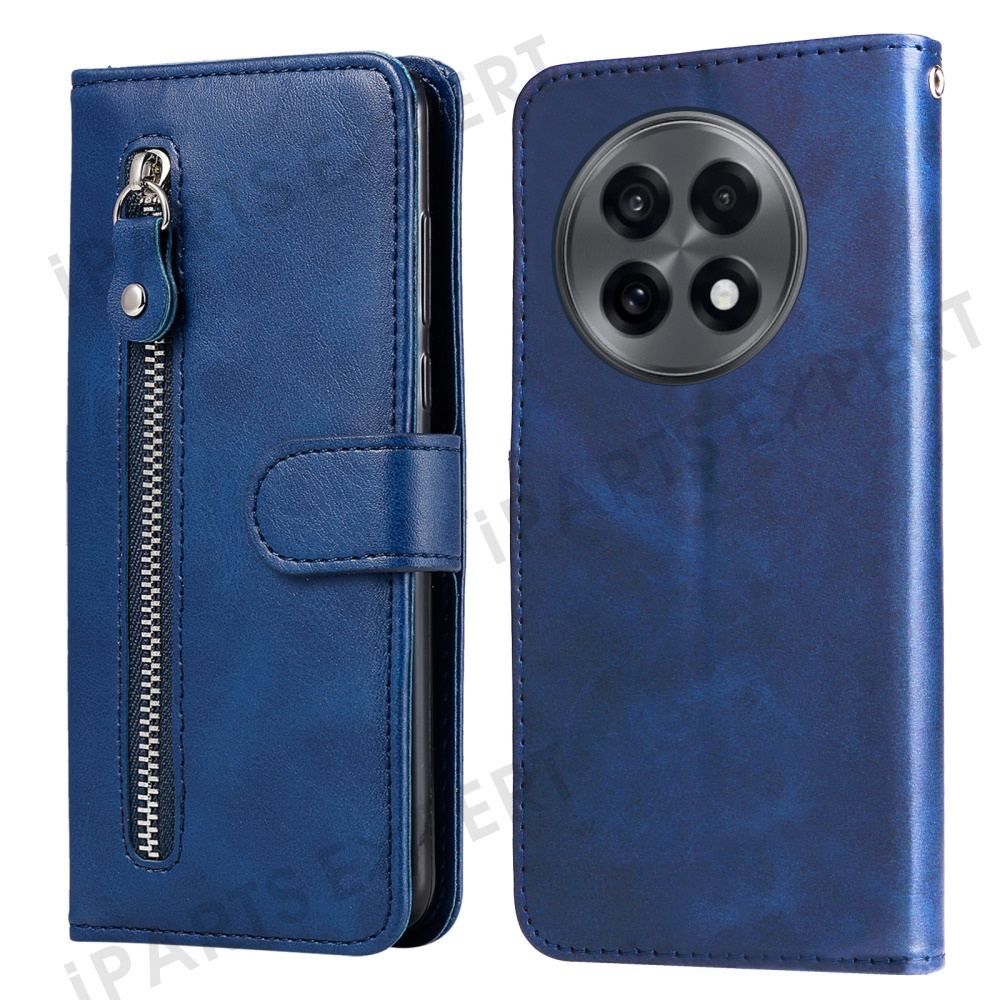 For OnePlus 13R 5G / Ace 5 5G / Ace 5 Pro 5G Case Zipper Wallet Calf Texture PU Leather Phone Cover - Blue